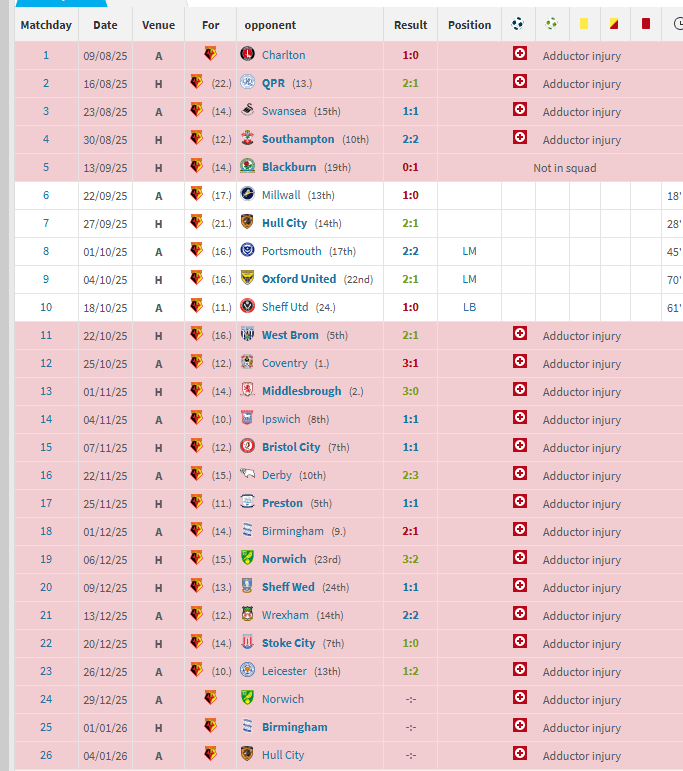 本赛季英冠赛程至今,他只出场5次,剩余时间全部在受伤。