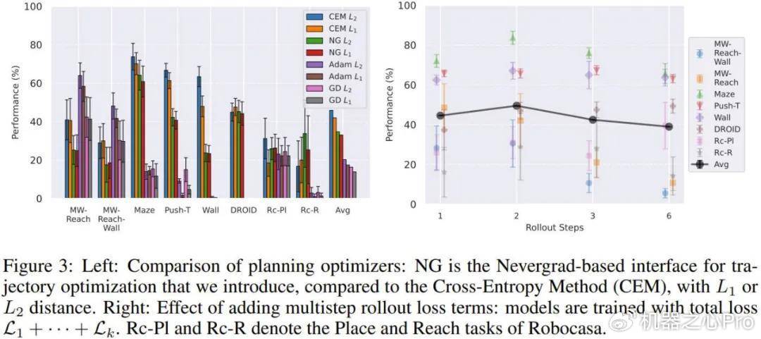 此外,新引入的Nevergrad(NG)规划器在无需调参的情况下展现了与CEM相当的实力,尤其适合跨任务迁移。