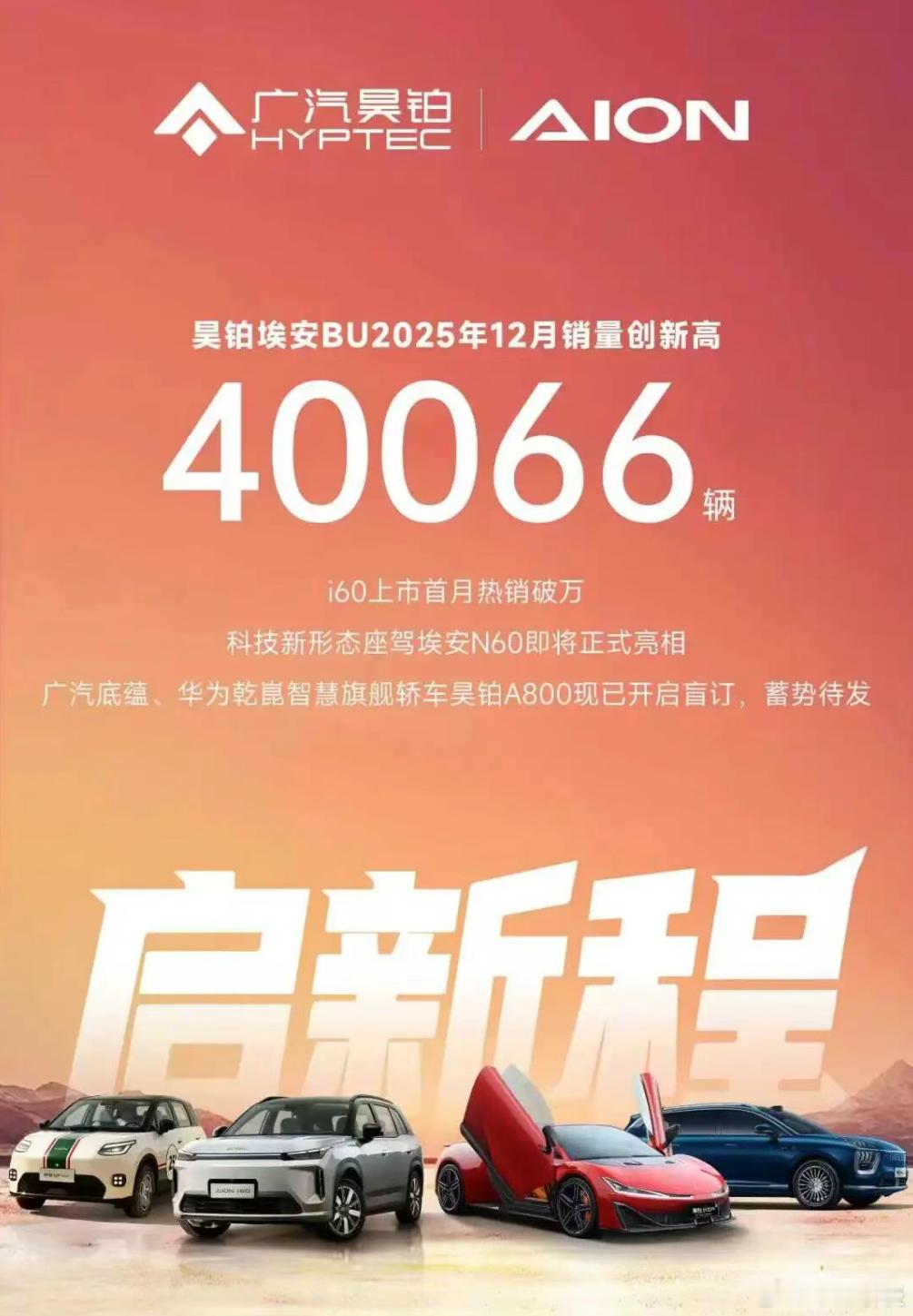 盘点新能源销量,还是不能忘了“老兵”广汽埃安。2025年12月18日,广汽集团正式启动自主品牌BU改革,第一步就是宣布昊铂与埃安统筹运营,组建“昊铂埃安BU”。特意看了下整合后的销量表现!2025年12月,昊铂埃安 BU月销超4万,值得关注的是,埃安i60上市首个完整月销量达到了10804台,“单品爆破”成功,总算帮埃安争了一口气!之前,埃安只造纯电,而埃安i60是埃安旗下首款增程/纯电双选车型,瞄准主流家用车市场,售价区间为10.98-13.58万元。它的增程版CLTC纯电续航210km,配备3C快充;纯电版车型最大续航650公里。从B端到C端,埃安在营销和服务层面也在加码升级,比如推出“三担责”,比如组织更多用户活动。2026年,大伙能感受到埃安的焕新气息么?拭目以待吧!新能源汽车、新能源大牛说车圈财报