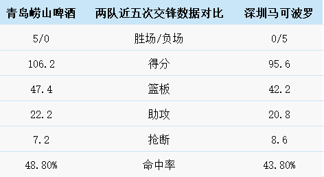 上赛季两队交手2次,青岛崂山啤酒2胜0负。
