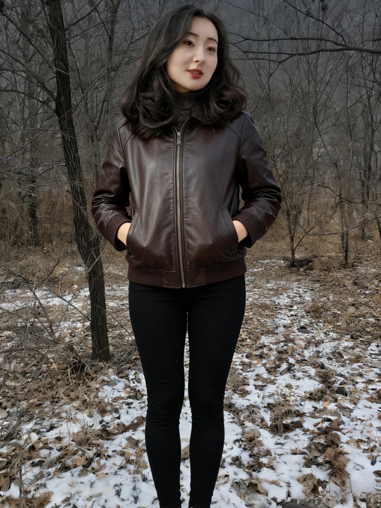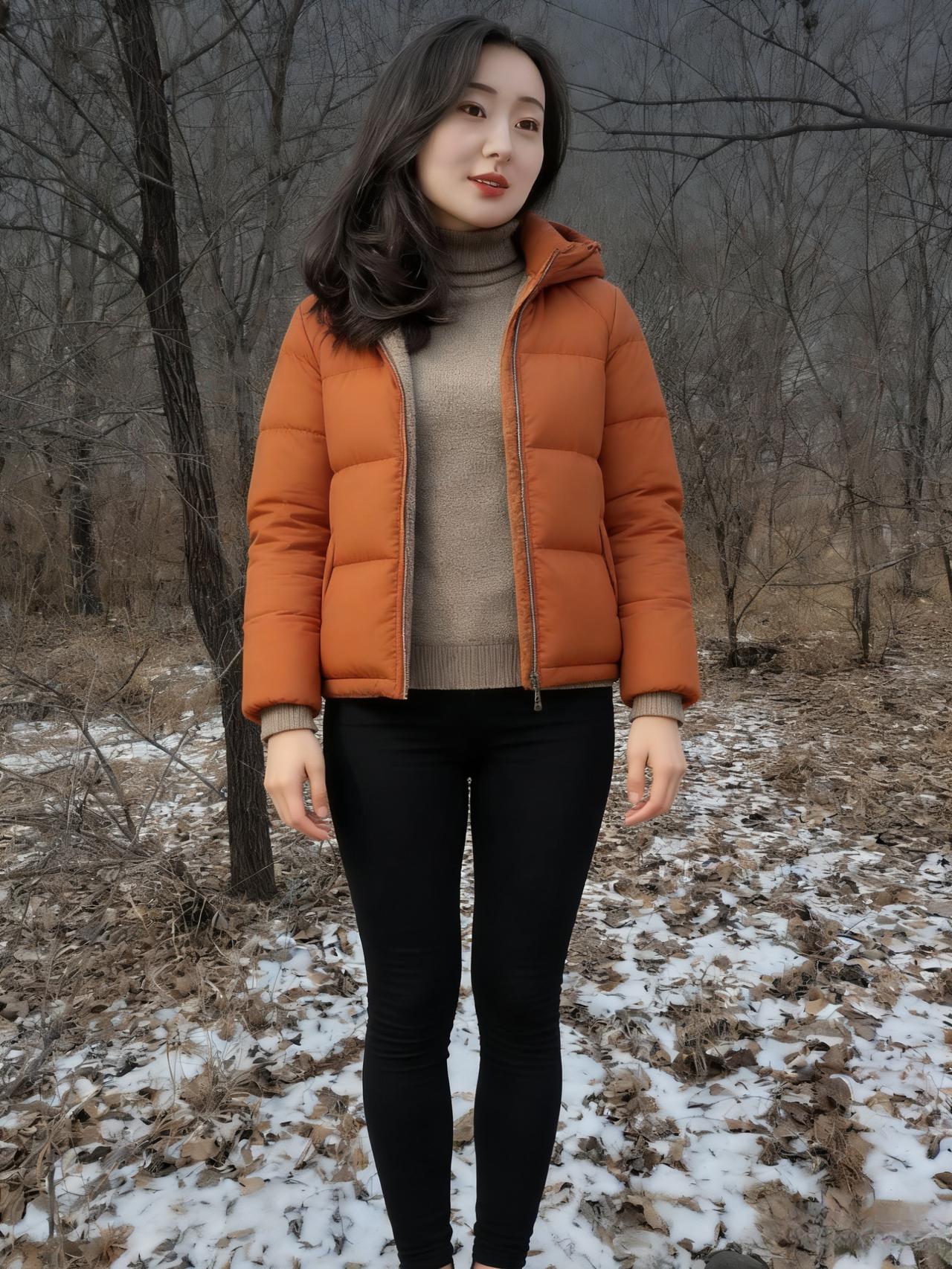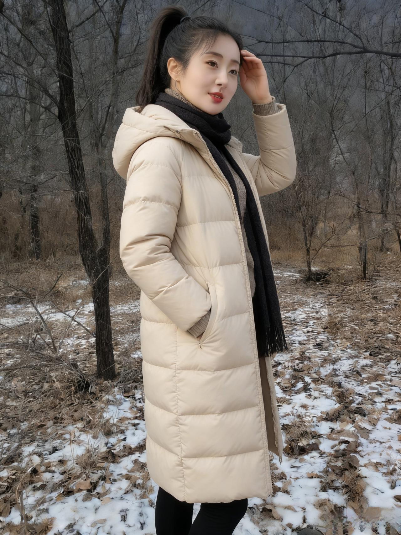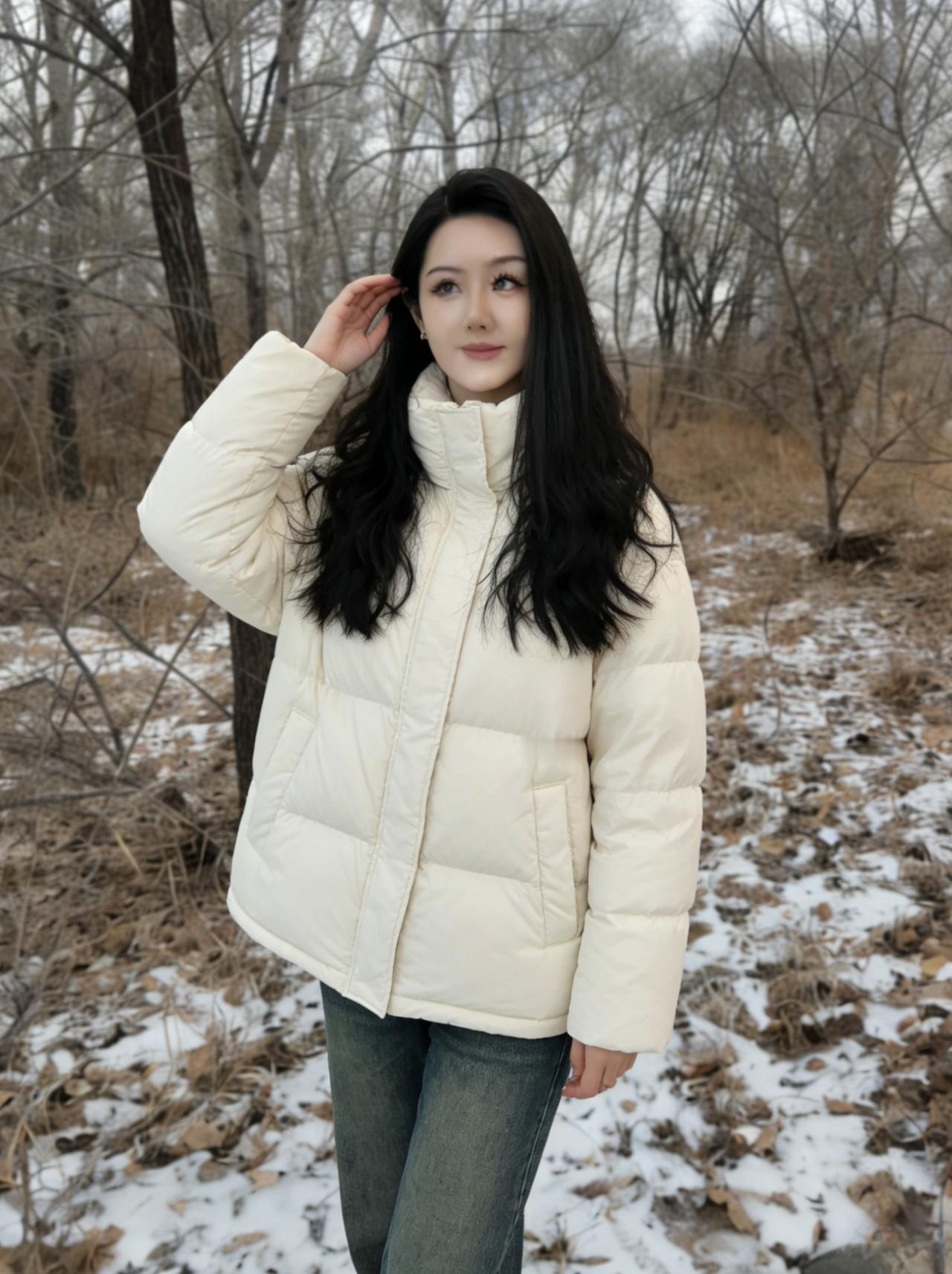 倩影亭亭立荒林,黑发千丝拂雪深。 风卷残枝鸣四野,天寒犹存少年心。