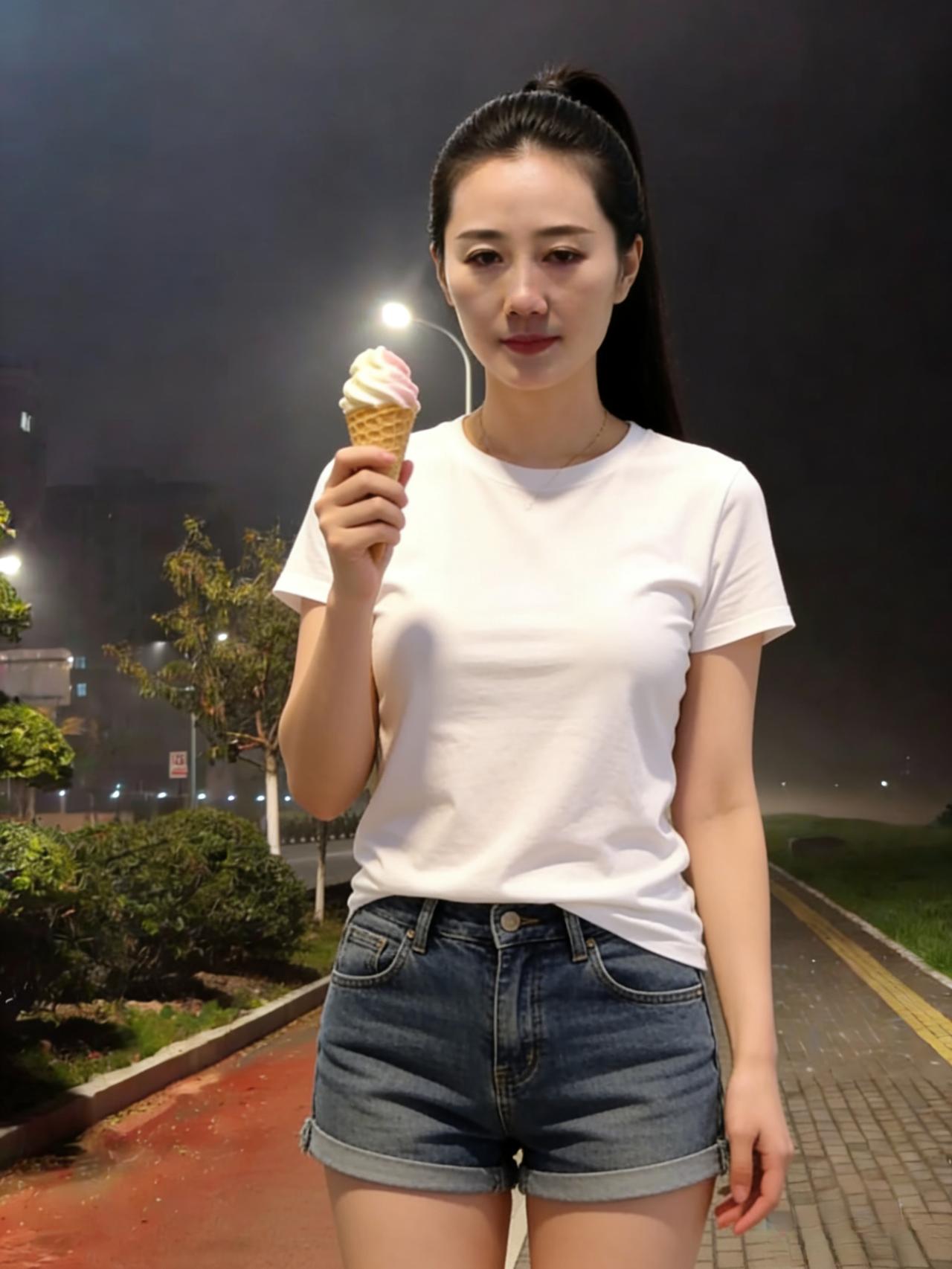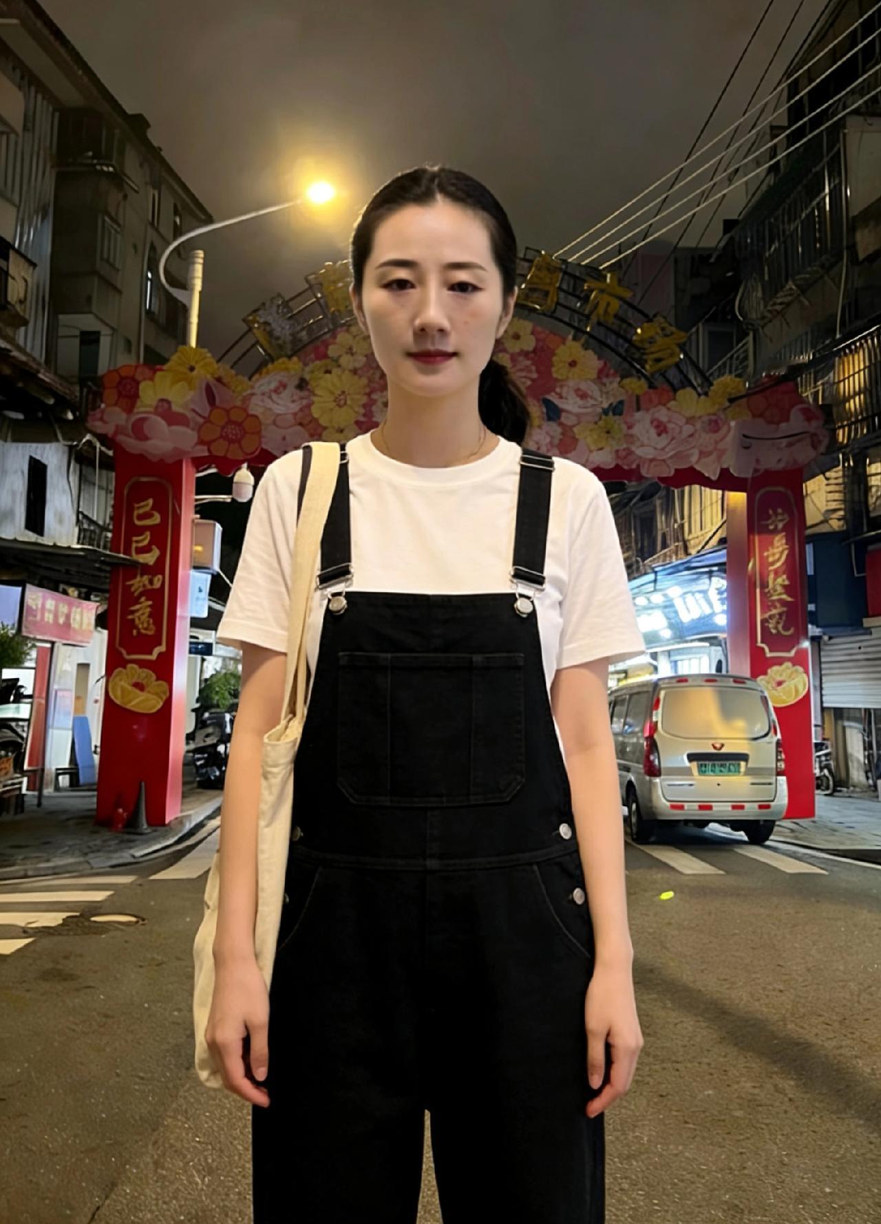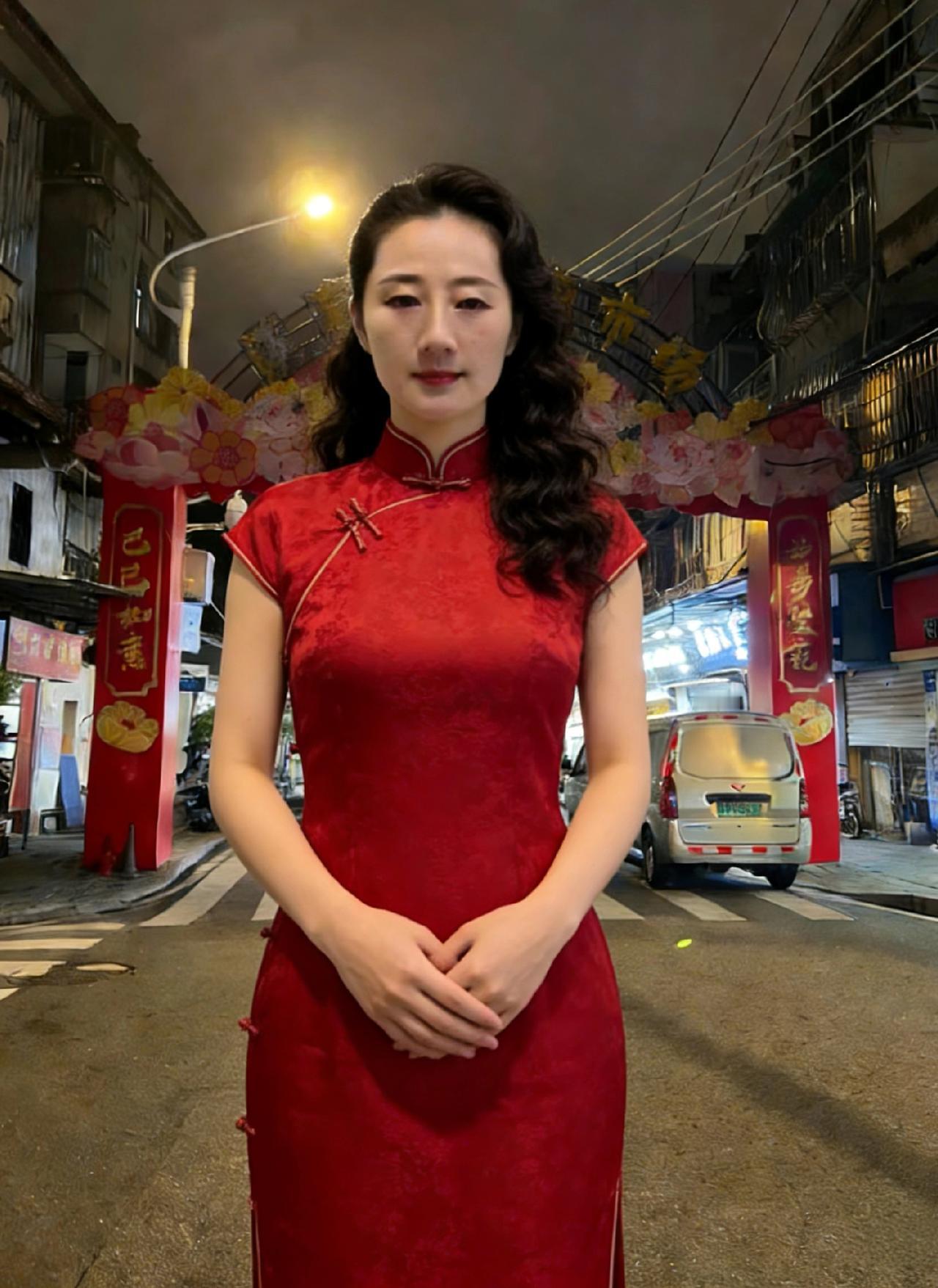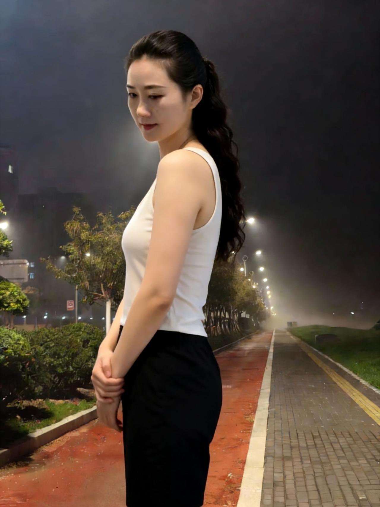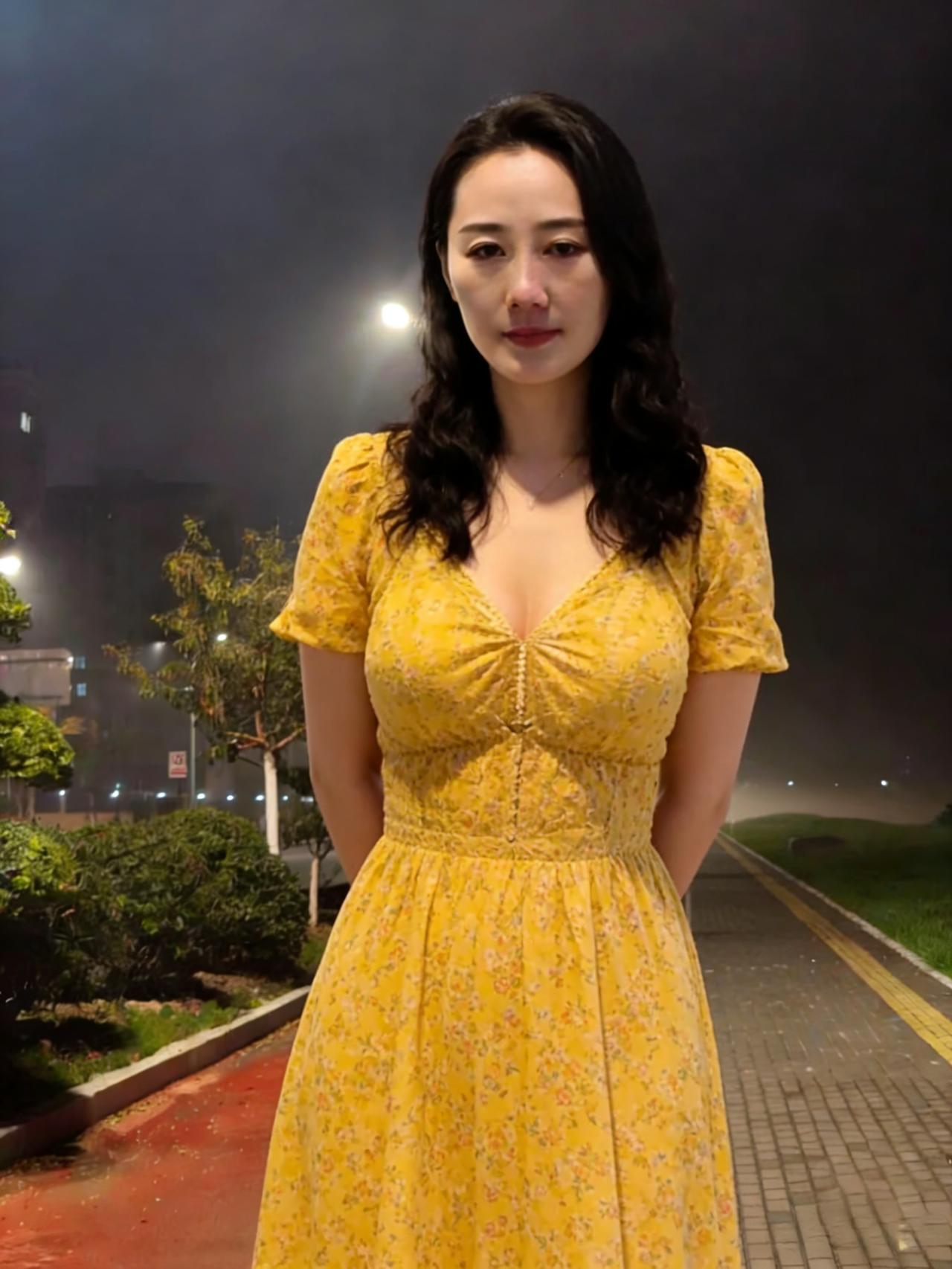 裙影飘飘立街隅,灯光如水映娇躯。 人间烟火添温柔,不借春风也胜书。