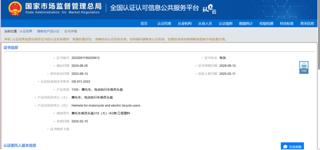 自2025年5月1日起,电动自行车安全头盔已被纳入国家强制性产品认证(CCC)目录。无论线上线下选购头盔,要认真查看头盔上是否有CCC认证标识,并同时查验CCC认证信息是否真实有效。消费者可通过全国认证认可信息公共服务平台(http://cx.cnca.cn)查验CCC认证信息是否真实有效。不要购买未经CCC认证、无CCC认证标识的头盔。如果发现伪造、冒用认证标识等违规行为,应立即向属地市场监管部门举报。