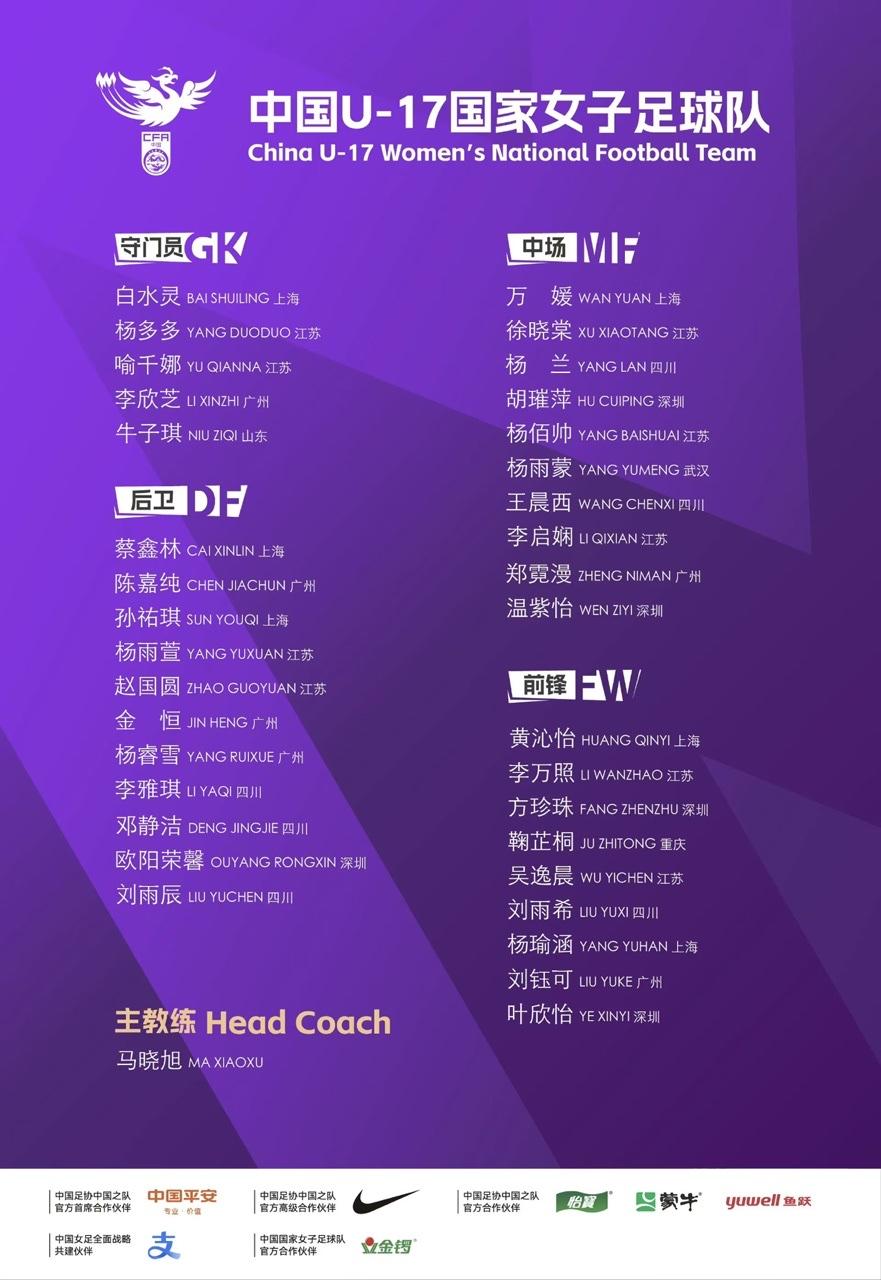 虎扑01月04日讯中国足协官方发布了《中国足球协会关于组织U-17国家女子足球队2026年第一期集训的通知》。