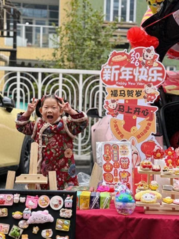 此时,孩子们化身为“小掌柜”,背着小挎包,踮着脚尖招揽顾客,有的拿着自制的叫卖牌喊着“年货大甩卖,便宜又好看”,有的认真地给顾客介绍商品,遇到讨价还价的小顾客,他们还会灵活应对,稚嫩的交流声、欢笑声回荡在停车场。