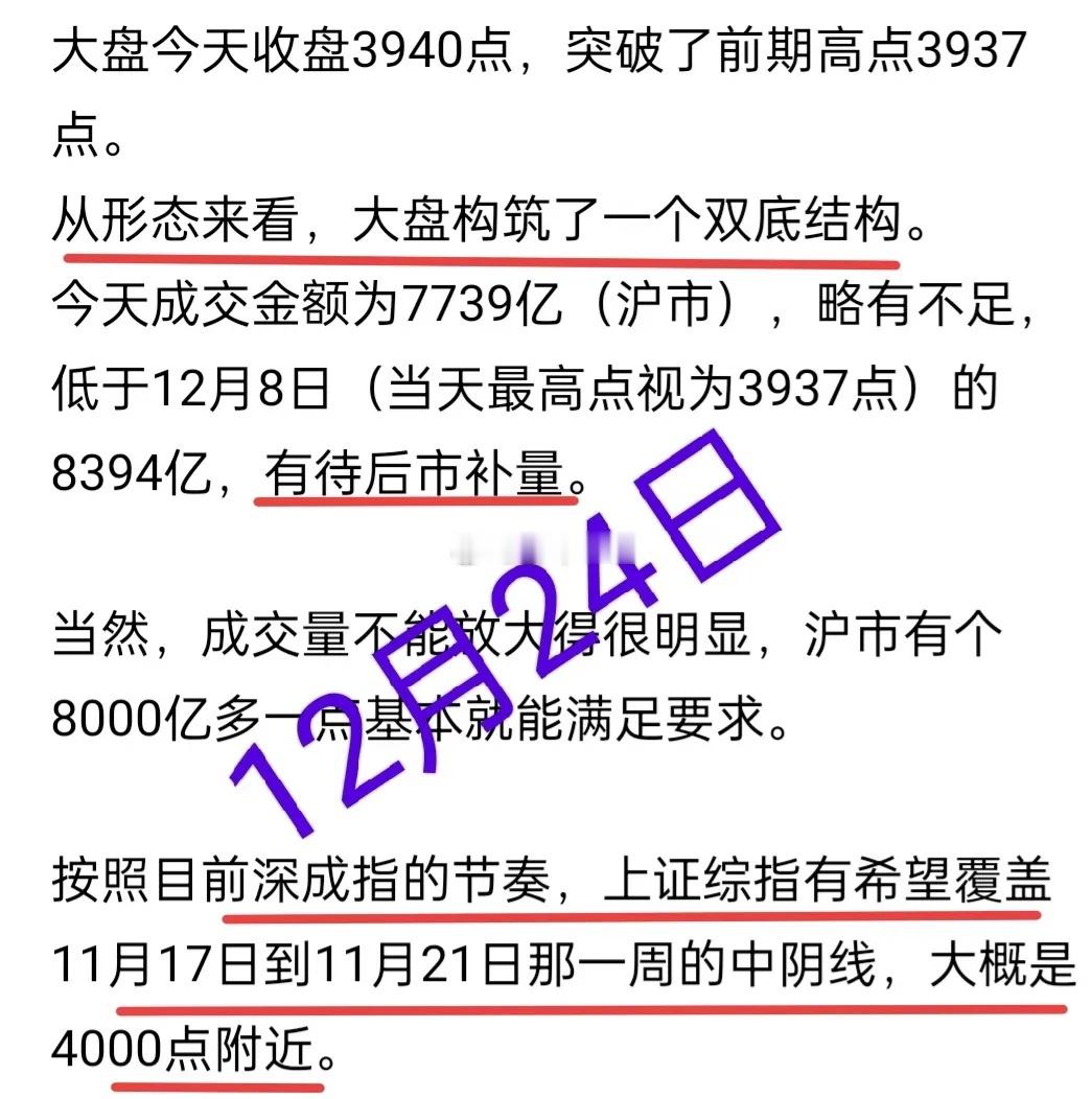A股:元旦期间有”黑天鹅”,也有好消息。大盘咋看呢?如何应对呢?一哥再一次重申,谨防大盘出现“春节效应”!港股节后第一天开市大涨,港科指数上涨幅度超过4%,对A股来说算是好消息吧。美国把委国总统给劫了,这算是黑天鹅了。这个事要说完全对中国没有影响是不客观的,但短期内这个影响是有限的,长期就不好说了。大盘不会因为这个黑天鹅而坏了整个趋势。大盘咋看呢?1,上升趋势线12月1日,一哥画过一条线(图),这条线是大盘在11月21日跳空下跌之前大盘的上升趋势线。大盘折腾了一个月,也没越过这条趋势线。目前趋势线上升到了4000点上方。2,双底结构12月24日,一哥讲过,大盘收盘3940点,超过了12月8日的高点3937点。大盘构筑了双底形态(图)。这个双底就是11月24日的3816点和12月16日的3815.84点。通常来说,双底结构形成后,量度升幅大概就是顶底差。也就是大盘目标指向了4000点上方,大概是4050点区域。上述两个结构,都把大盘目标引向了4000点上方,那我们就做好大盘继续上涨的心理准备吧。如果大盘回踩中期均线,也就是3910点一线,也不必过于慌张。春节效应是根据大盘过往轨迹来判断的。近几年春节前一个月,大盘都是前倨后恭,先跌一跌再涨一涨。按今年春节来算,大概时间是1月中下旬左右。震荡市场,把握好节奏,控制好仓位。跟随市场主流,顺个股趋势走,见量下菜。个人观点,仅供交流,不构成投资建议!理财有风险,投资需谨慎!a股今日看盘股票A股股市分析大盘分析行情大盘要跌吗
