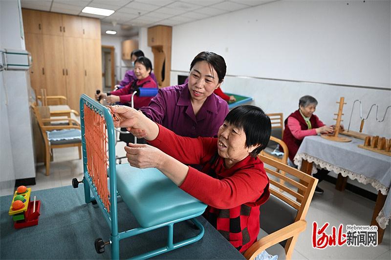 近日,邢台市南和区人民医院医养中心护理员在陪老人做益智游戏。