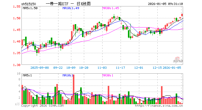 1月5日,一带一路ETF(515150)开盘涨0.33%,报1.507元。一带一路ETF(515150)重仓股方面,平高电气开盘涨0.58%,山东黄金涨1.91%,紫金矿业涨2.41%,中远海控跌0.40%,广东宏大涨0.00%,中国铝业涨4.09%,小商品城涨0.00%,中远海发涨0.00%,中海油服涨3.21%,云铝股份涨3.56%。