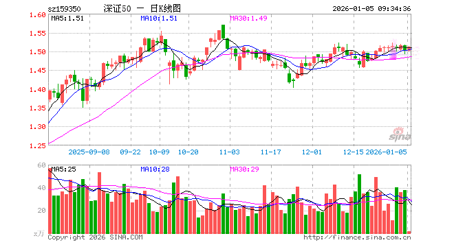 1月5日,深证50ETF富国(159350)开盘涨0.07%,报1.501元。深证50ETF富国(159350)重仓股方面,宁德时代开盘涨0.75%,美的集团涨2.42%,中际旭创涨1.82%,东方财富涨0.17%,新易盛涨1.42%,立讯精密涨0.72%,比亚迪涨0.70%,阳光电源涨1.51%,五粮液跌0.04%,北方华创涨1.94%。