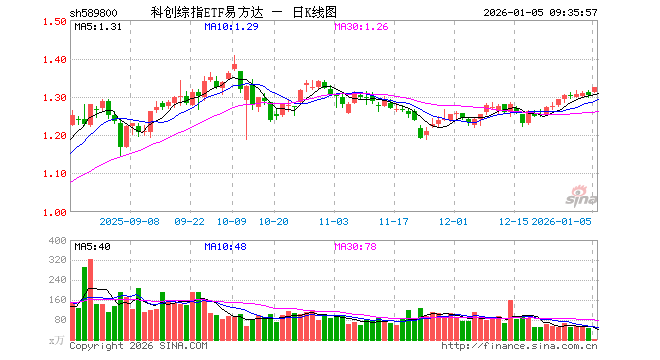 1月5日,科创综指ETF易方达(589800)开盘涨0.61%,报1.311元。科创综指ETF易方达(589800)重仓股方面,海光信息开盘涨1.38%,寒武纪涨1.43%,中芯国际涨3.26%,中微公司涨1.94%,澜起科技涨1.44%,百利天恒跌2.35%,金山办公涨0.34%,联影医疗涨0.00%,影石创新涨0.04%,传音控股涨0.00%。