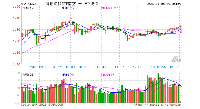 科创综指ETF南方(589660)业绩比较基准为上证科创板综合指数收益率,管理人为南方基金管理股份有限公司,基金经理为潘水洋、杨恺宁,成立(2025-02-26)以来回报为31.07%,近一个月回报为3.51%。