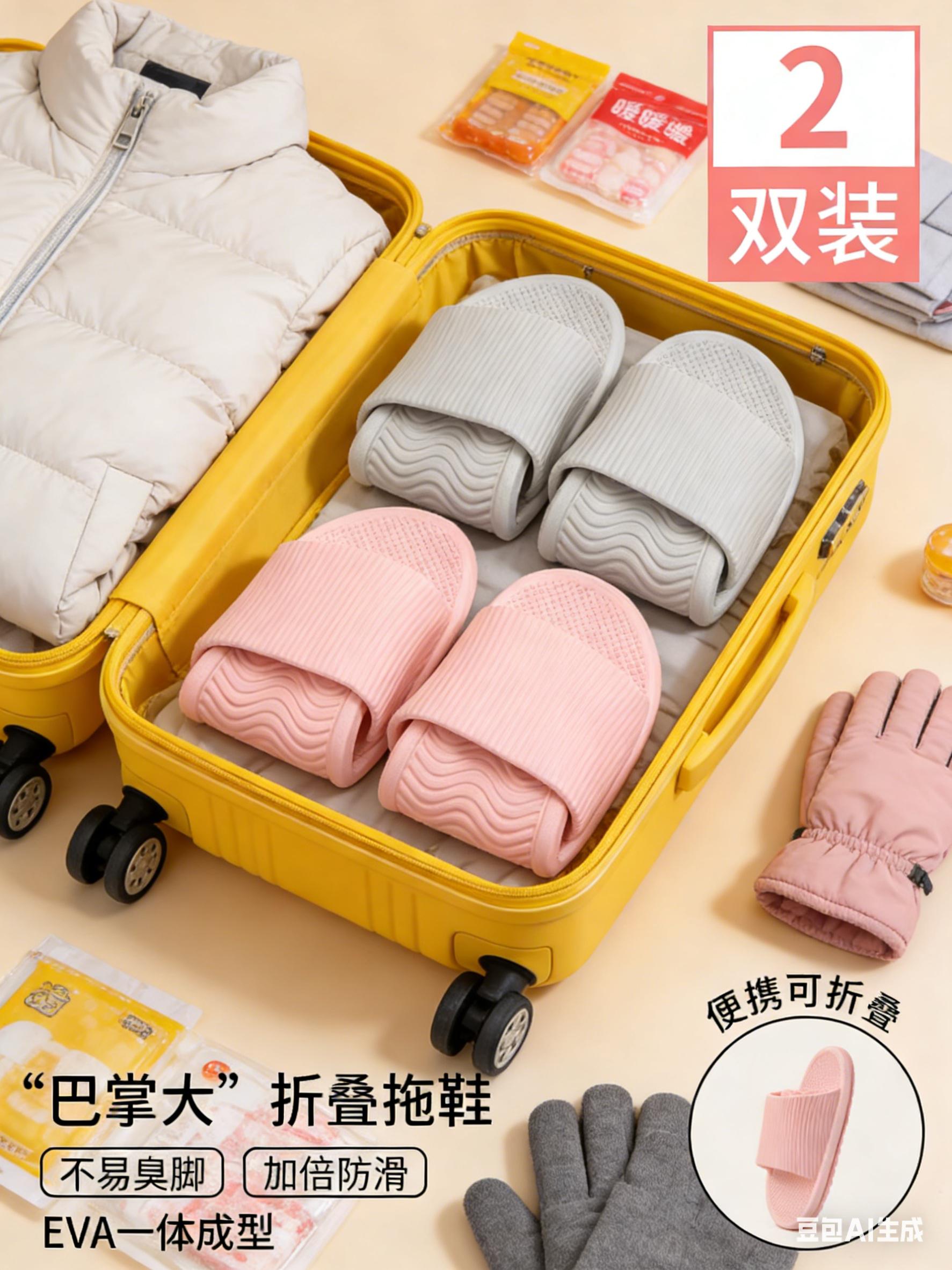 手机大小塞行李箱不占地,上脚轻便舒服还防滑,关键干净又卫生!