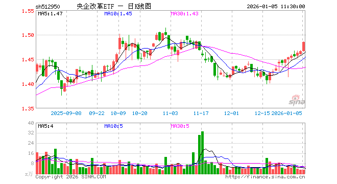 1月5日,截止午间收盘,央企改革ETF(512950)涨1.30%,报1.485元,成交额456.06万元。央企改革ETF(512950)重仓股方面,澜起科技截止午盘涨9.17%,中芯国际涨5.55%,海康威视涨0.67%,国电南瑞涨3.11%,招商银行涨0.64%,宝钢股份跌2.15%,中国神华跌0.37%,长安汽车跌0.42%,中国电信涨0.16%,中国建筑跌0.19%。