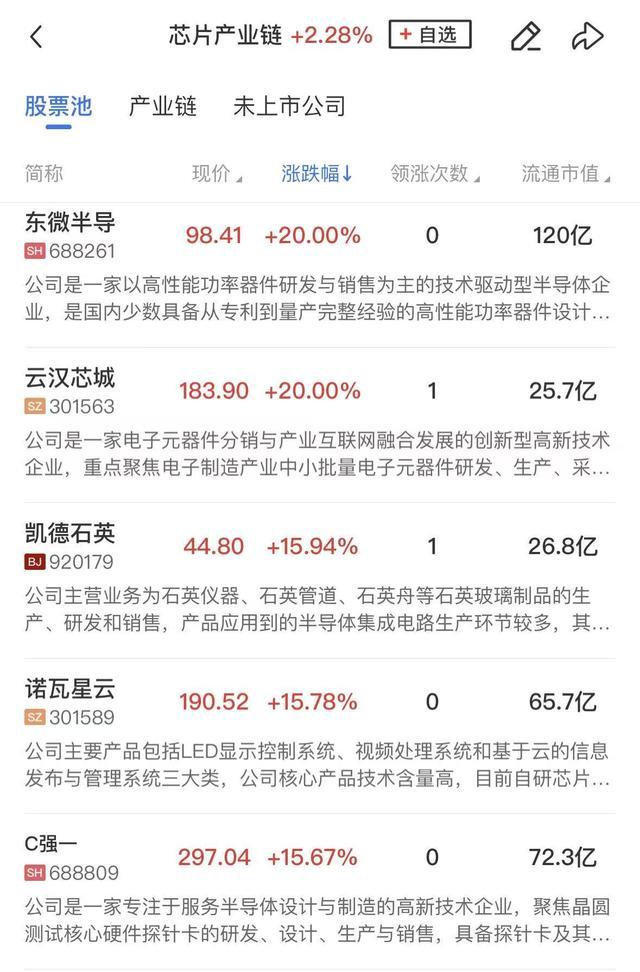 半导体产业链同样走强,东微半导、兆易创新、立昂微、亚翔集成、圣晖集成等涨停,江波龙、中微公司、成都华微、上海新阳等涨超10%。