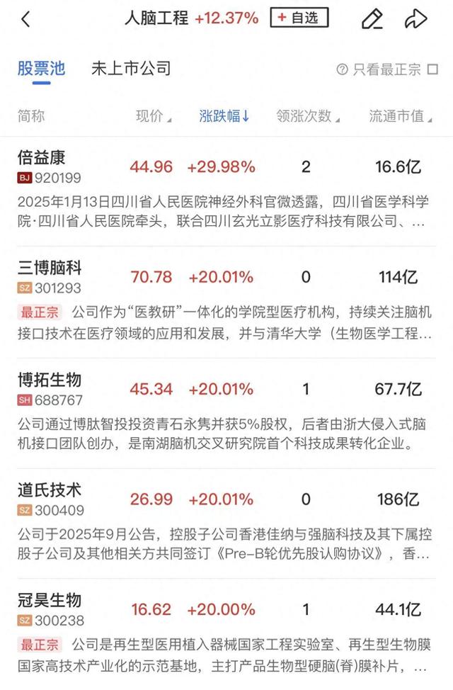 板块上,脑机接口全线爆发,博拓生物、航天长峰、倍益康、三博脑科、翔宇医疗、伟思医疗、诚益通、爱朋医疗、创新医疗等20余股涨停。