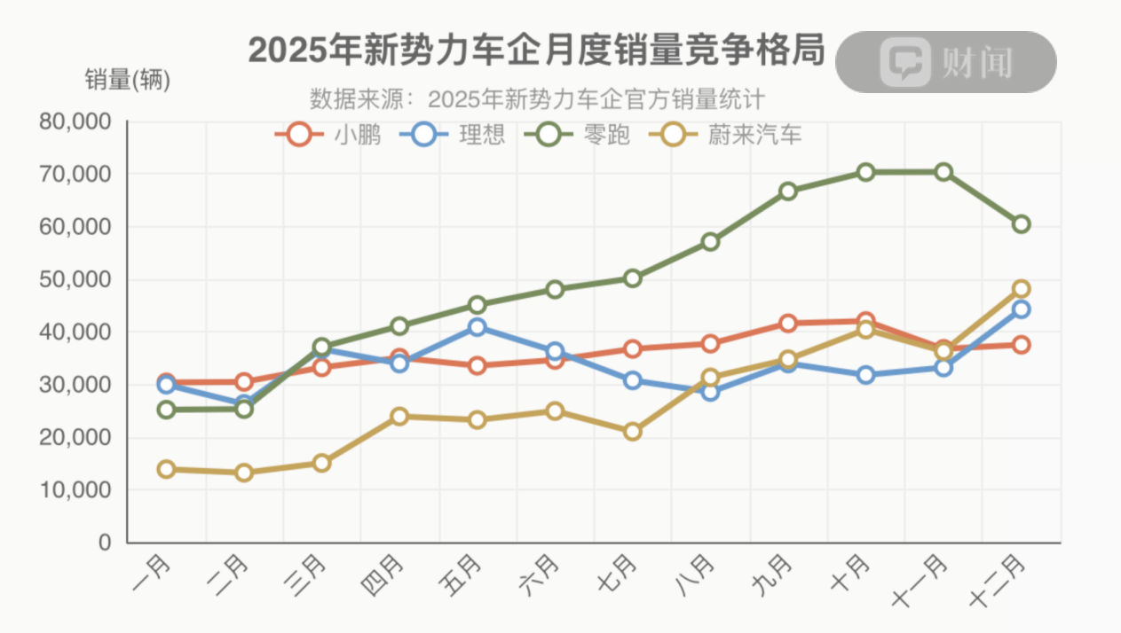 元旦假期期间,中国新势力造车企业陆续发布2025年销量成绩。过去一年,新能源汽车市场在产能过剩、价格战白热化与技术路线分化的多重冲击下,彻底打破了此前的“蔚来、小鹏、理想三强垄断”格局。
