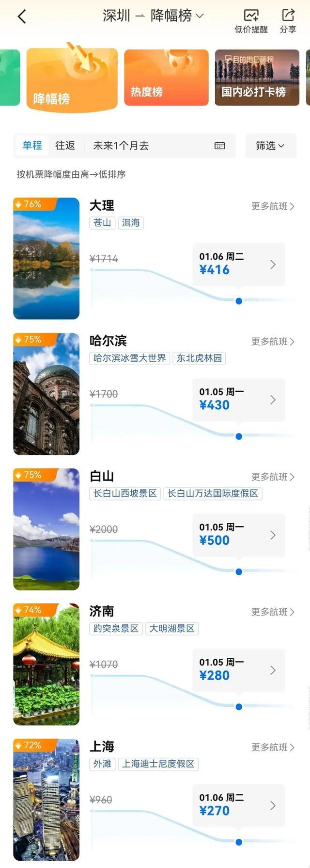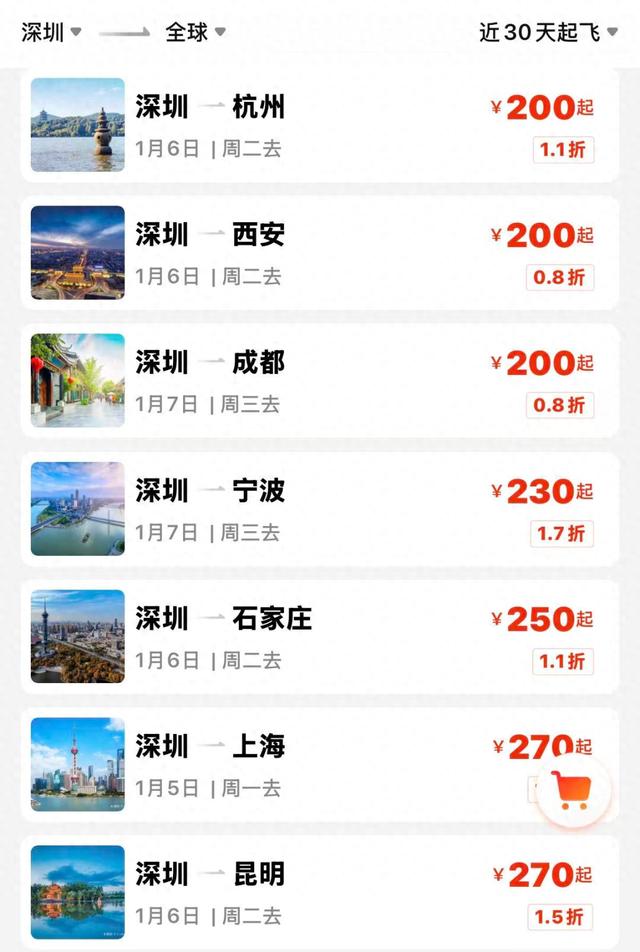 深圳出发机票价格开始下降
