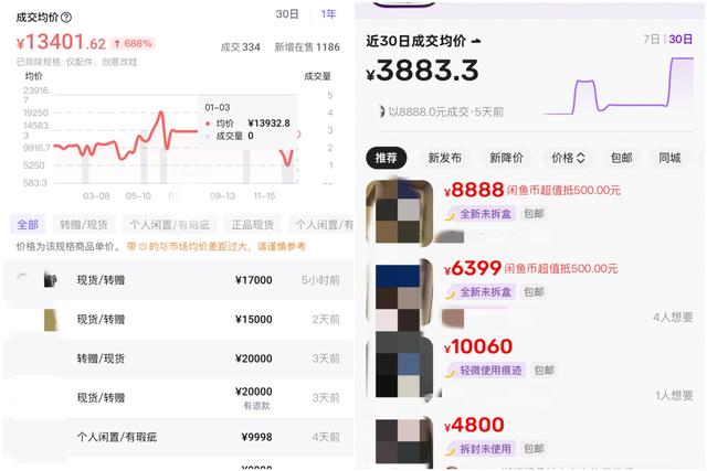 首先,限量款等带有一定收藏价值的产品,价格波动较大,但始终保持高溢价。