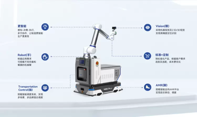 本届发布会,艾利特机器人旗下品牌——迈幸机器人,推出了革命性的复合机器人产品,通过“脑、眼、手、脚”的深度融合与升级,打破了技术、场景与人机交互的传统边界,实现对复合机器人行业协同范式的一次系统性重构。