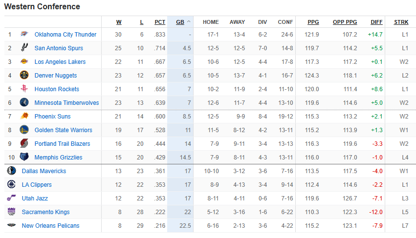 马刺、掘金、火箭都遭遇输球,湖人排名升至西部第三