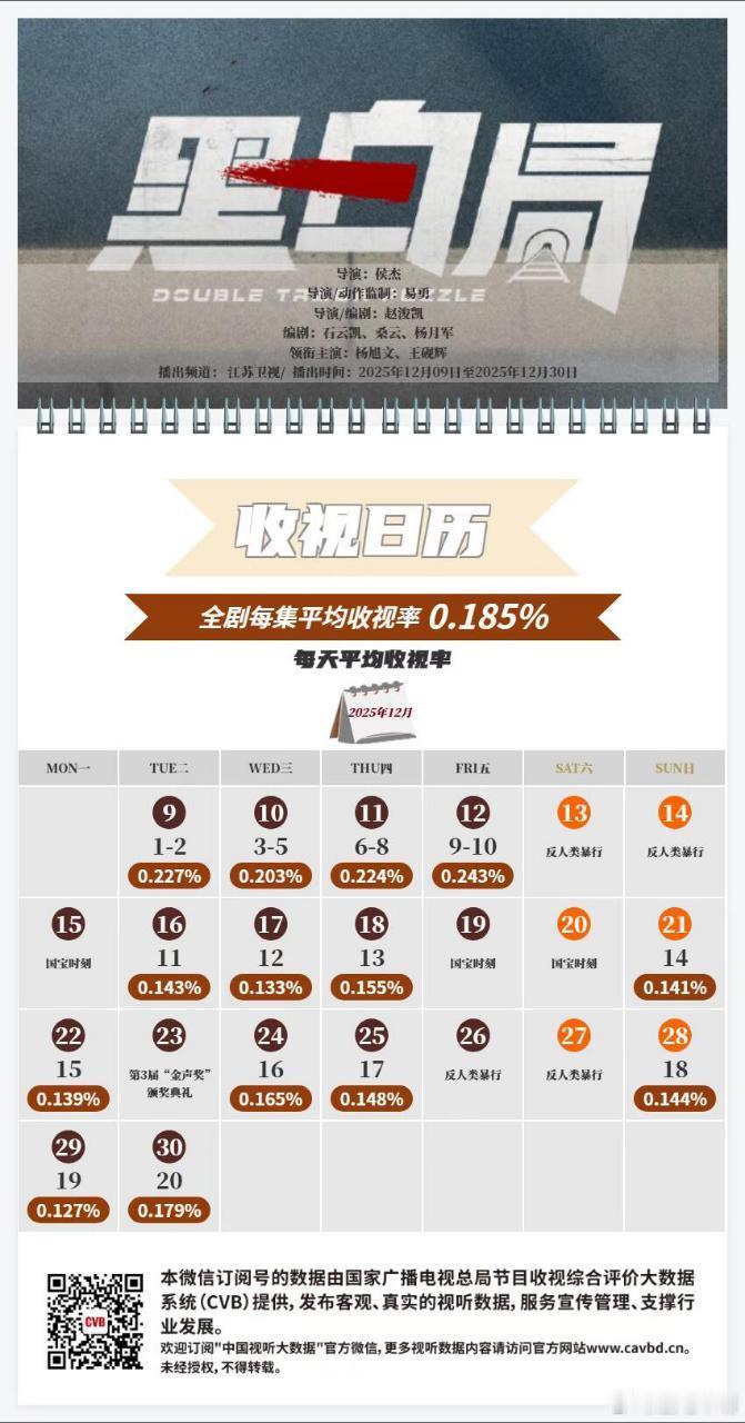 cvb收视日历!《狙击蝴蝶》 0.381 我估算0.382《黑白局》