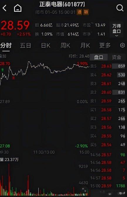 截至2026年1月5日收盘,正泰电器股价为28.59元/股,总市值614亿元。中经记者张英英吴可仲北京报道