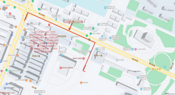 占道施工时间:2026年1月6日至2026年2月6日(以现场实际封闭时间为准)。