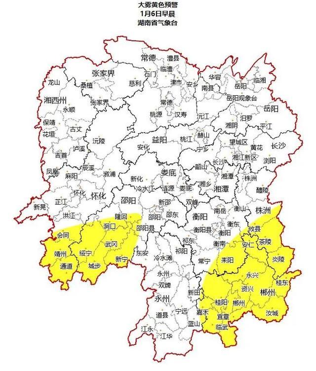 需注意的是,今日16时湖南省气象台已发布大雾黄色预警,预计6日早晨湘西南、湘东南部分地区将出现能见度不足500米的雾,局部能见度低于200米,将对交通产生较大影响。其中,黄色预警区域包括株洲中南部、怀化南部、邵阳中南部、衡阳东南部、郴州,有上述地区出行计划的市民朋友需注意。