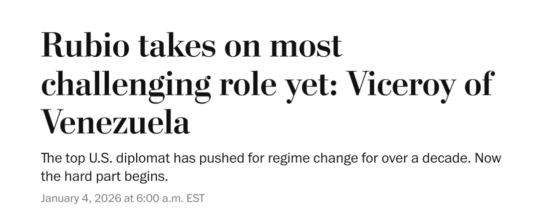 而最新传出的消息更是令人匪夷所思:参考消息援引《华盛顿邮报》4日报道称,鲁比奥或已被选中担任最为棘手的职务——委内瑞拉“总督”。