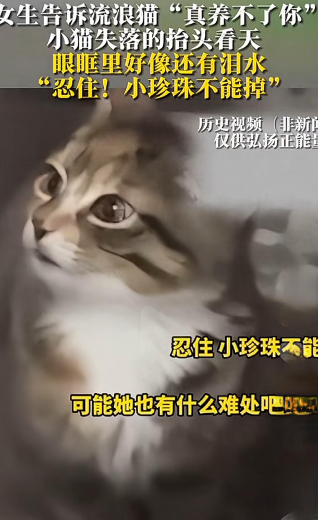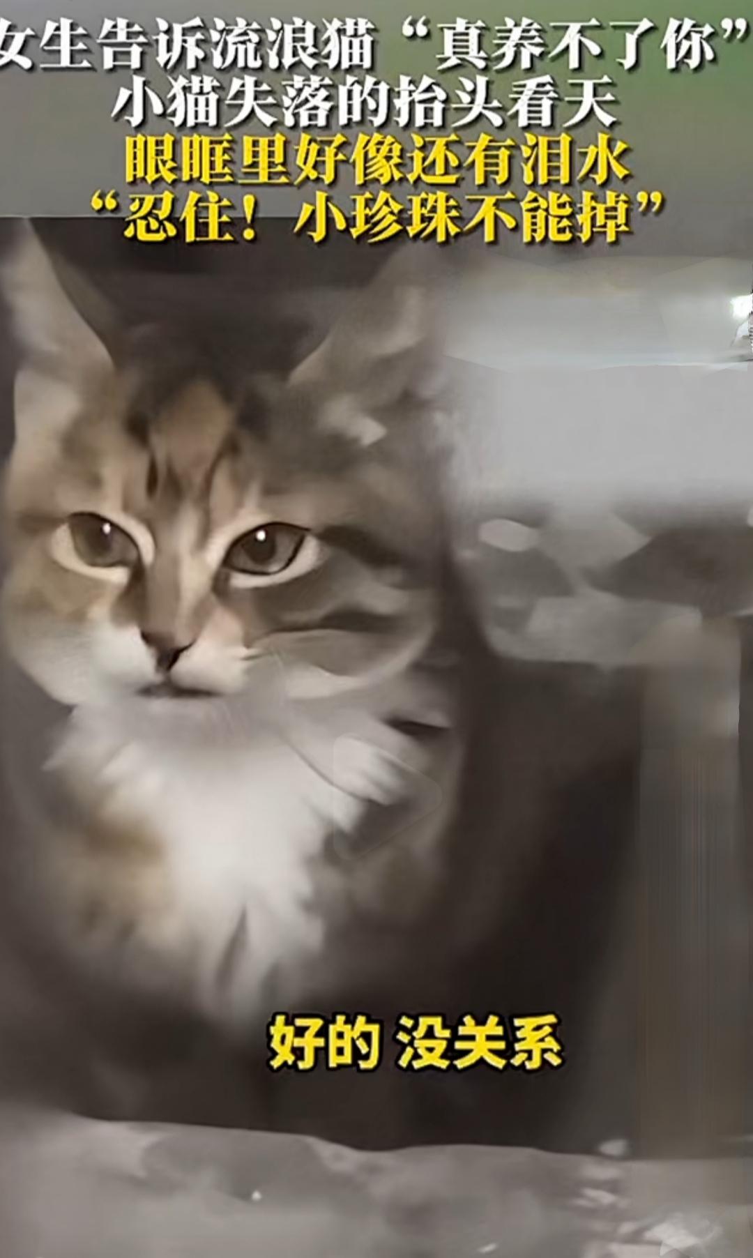 女生告诉流浪猫“真养不了你”,小猫失落的抬头看天 眼眶里好像还有泪水,“忍住!小珍珠不能掉”。 在这个快节奏的城市角落里,似乎总有那么一些瞬间,能让人忽然停下脚步,感受到生命的温度。今天的故事,便是其中之一。女生轻声对流浪猫说:“真养不了你。”话语中夹杂着无奈和心疼,仿佛在告诉自己,也在告诉那只小猫:对不起,小珍珠,或许我们注定只是短暂的相遇。 小猫抬头看天,那双大大的眼睛里,满是迷茫和期待。它似乎在问:“为什么?我不是那么难养吗?你不是说要陪我一辈子?”可是,现实总是那么残酷。女生的心里,也像被针扎一样难受。她知道,自己没有能力给小猫一个稳定的家,没有办法为它提供温暖的港湾。她心里暗暗发誓:“忍住!小珍珠不能掉。”那是一种不舍,也是一份责任。 你有没有过这样的时刻?明知道某些事情不能坚持,却还是忍不住心疼得想要去抱紧那一份纯真的期待。或许我们都曾在生活的某个角落扮演过“那个无奈的自己”。我们都在努力平衡着“爱”与“责任”,在心里暗暗发誓:我会尽力,但我也知道,有些东西,终究不能强求。 这只小猫,小珍珠,或许只是无声的象征。它代表着那些被遗忘、被放弃、被伤害的小生命,也代表着我们每个人心中那份柔软与坚持。它用那双大眼睛,望向天际,似乎在寻找答案:为什么爱会变得如此脆弱?为什么我们总是在舍不得中挣扎? 而我们呢?是不是也在生活中不断演绎着“舍与得”的戏码?我们会不会在某个瞬间,像女生一样,望着那些无法拥有的东西,忍住泪水,告诉自己“忍住!不能掉。”其实,正是这些“忍住”,让我们变得更坚强,也让那些被放手的瞬间,成为未来更好的自己。 或许,故事的结局不是“拥有”与“失去”的简单对错,而是我们在这个过程中学会了什么。学会了爱,学会了放手,学会了用一份温柔去面对那些无法改变的现实。因为,真正的爱,不是占有,而是懂得珍惜与放手之间的那份平衡。 所以,下次当你看到那些“忍住”的瞬间,不妨想一想:也许,那正是成长的痕迹,是我们用心书写的生命篇章。就像那只小珍珠,无论天多么阴暗,它依然在天际抬头,期待着下一次的奇迹。我们也一样,在人生的旅途中,学会了坚强,也学会了用爱去面对一切。流浪猫 萌宠