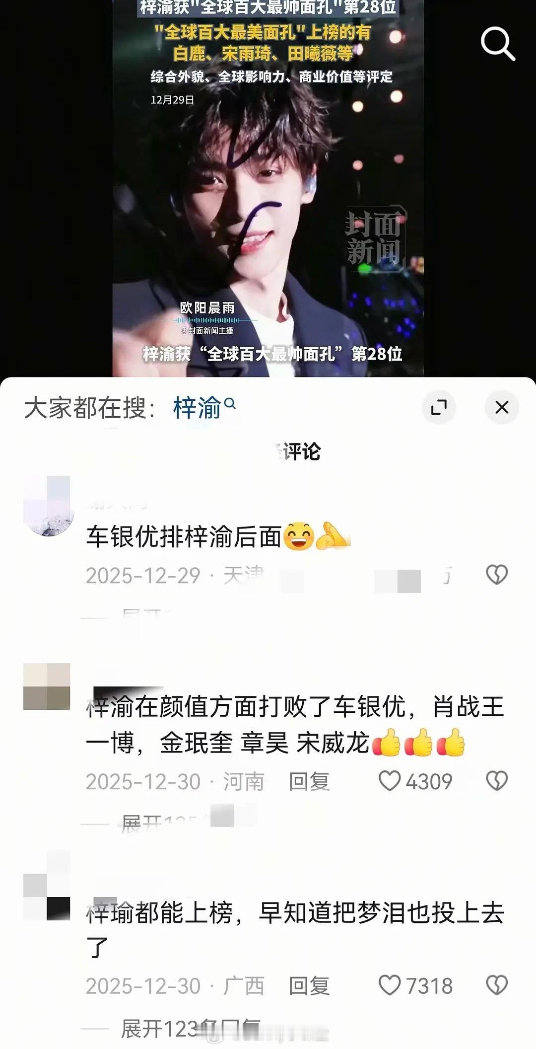 梓渝入选2025全球百大最帅面孔,排名打败一众男星,抖人锐评:内娱韩娱泰娱,突然