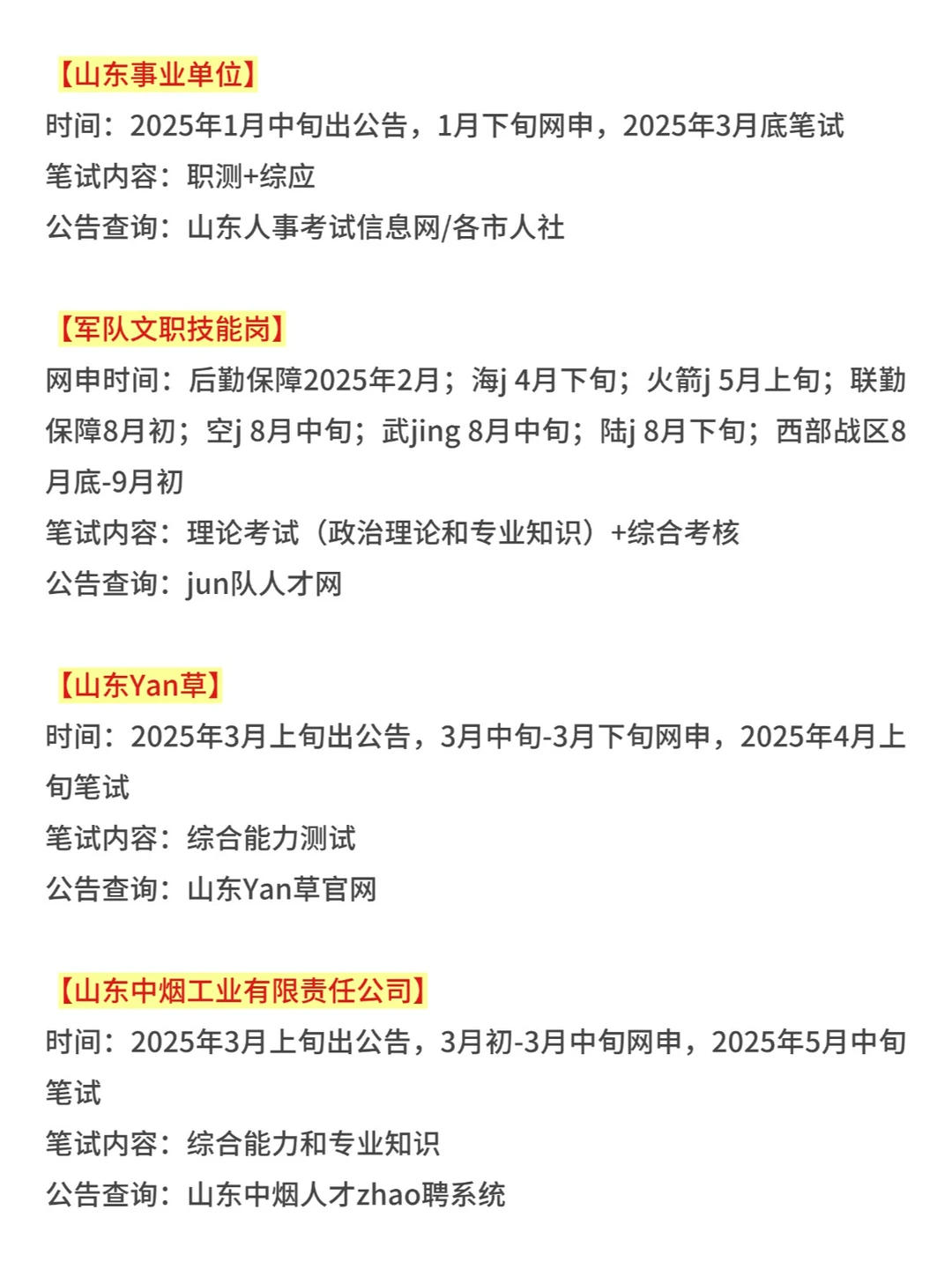 7、山东事业单位:2025年1月下旬网申,3月底笔试
