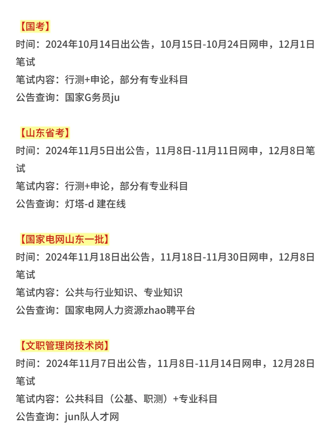 5、文职管理岗技术岗:11月上旬网申,12月28日笔试