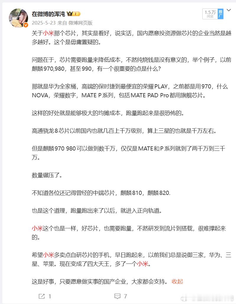 其实说投放什么的,我觉得还好,讲真,我之前也说过,我是个从市场数据出发的人,我也没否认过小米的车卖的好。甚至小米说做芯片,我也是支持的,毕竟作为一个中国人来说,我一直的观点就是,国内的企业赚的多,对于国人来说,生活会更好。不过现在来看,我的观点也不算错,现在小米确实是被一些人绑架了。连作为一个正常企业自己操作都不行了,如果说企业要做什么事情,都需要考虑粉丝的想法和态度,你有没有想起娱乐圈的那些大粉,铁粉绑架偶像的做法?你要做XXX,OOO,考虑粉丝的感受没?之前我印象中,其实粉丝这东西有肯定好,但是更重要的是路人盘。这里举个例子,比如说之前堪称首周票房最重磅的电影,蝙蝠侠VS超人,最重磅的英雄对决,最大的IP,最多的宣发。北美首周票房1.66亿美元,这个数据是十年前的数据,已经很牛逼了。更牛逼的是,首周全球票房达到了4.24亿美元,可以说超级IP的影响力+超级宣发效果非常突出。但是最终票房是多少?北美票房是3.3亿,全球总票房是8.74.发现了吗?刚刚好,首周的票房就是总票房的一半。这就是口碑崩坏的影响力,因为后续路人的口碑会用真金白银去投票。而且不止是电影,游戏、数码产品,电子产品,汽车都是这样。开局很重要,但是更重要的是,你要让口碑变好,让更多的路人群体去买。就像你说问界M9全是花粉?这怎么可能,其实更多的都是早期的铁血花粉采购了,然后相互安利,推荐,然后才能够在长期的销售过程中,拿下一个稳妥的销售曲线。因为任何品牌都不可能靠粉丝来卖,真正想要做到长期稳定,需要的是好口碑。这个之前我就举例过,第一代智界R7,黄金开局,结果乱七八糟的破事,硬生生把自己从首销过万,玩成了月销3000,真的是太可惜了 。不过从这个角度,其实也能够看得出来,鸿蒙智行要卖的群体,更多的是都是路人,而不是所谓的极端粉。极端粉肯定都有,但是真正卖货的对象,肯定不是极端粉。比如说花100万买尊界S800的,半年交付一万台,这里是实打实的约100亿的销售额,你就说,从哪里去骗那么多人吧。所以不管是鸿蒙智行,还是小米,零跑,理想,本质上都是从广大的路人盘里去吸引,去卖货。扪心自问一下,我都不说你愿不愿意花50万支持某个人,买产品了,你愿意花五万块,不认真思考,货比三家,综合体验后,再去掏钱?当然,如果你说你愿意,那我只能说,你是这个: