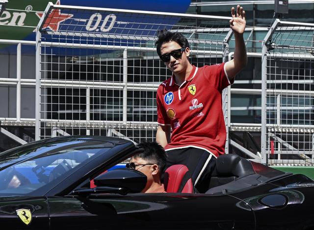 去年3月,法拉利车队储备车手周冠宇参加中国大奖赛车手巡游仪式