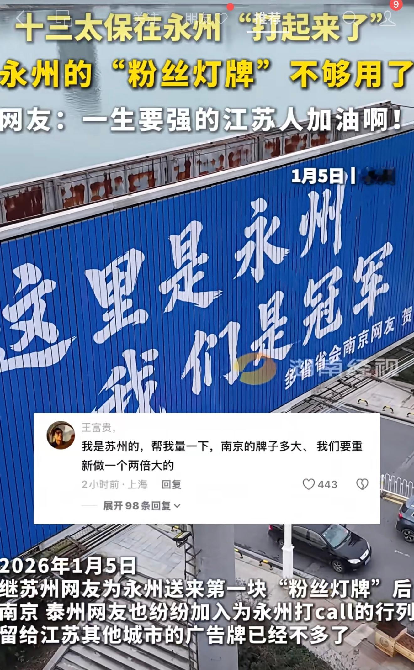江苏十三太保也太有趣了吧,早几天苏州网友贺的广告牌刚出圈。今天南京网友迫不及待了