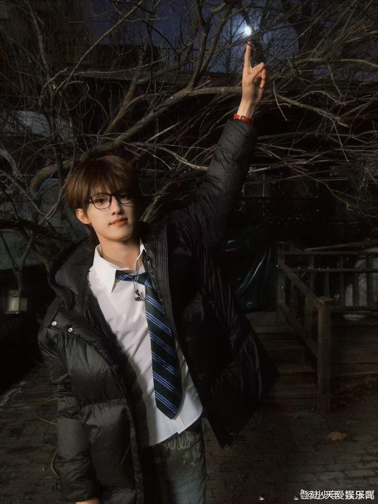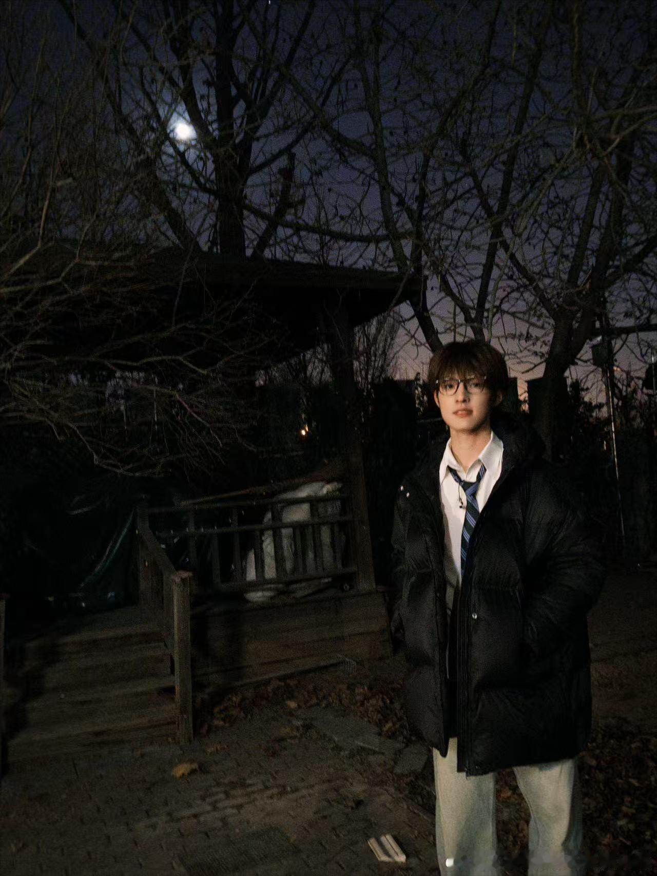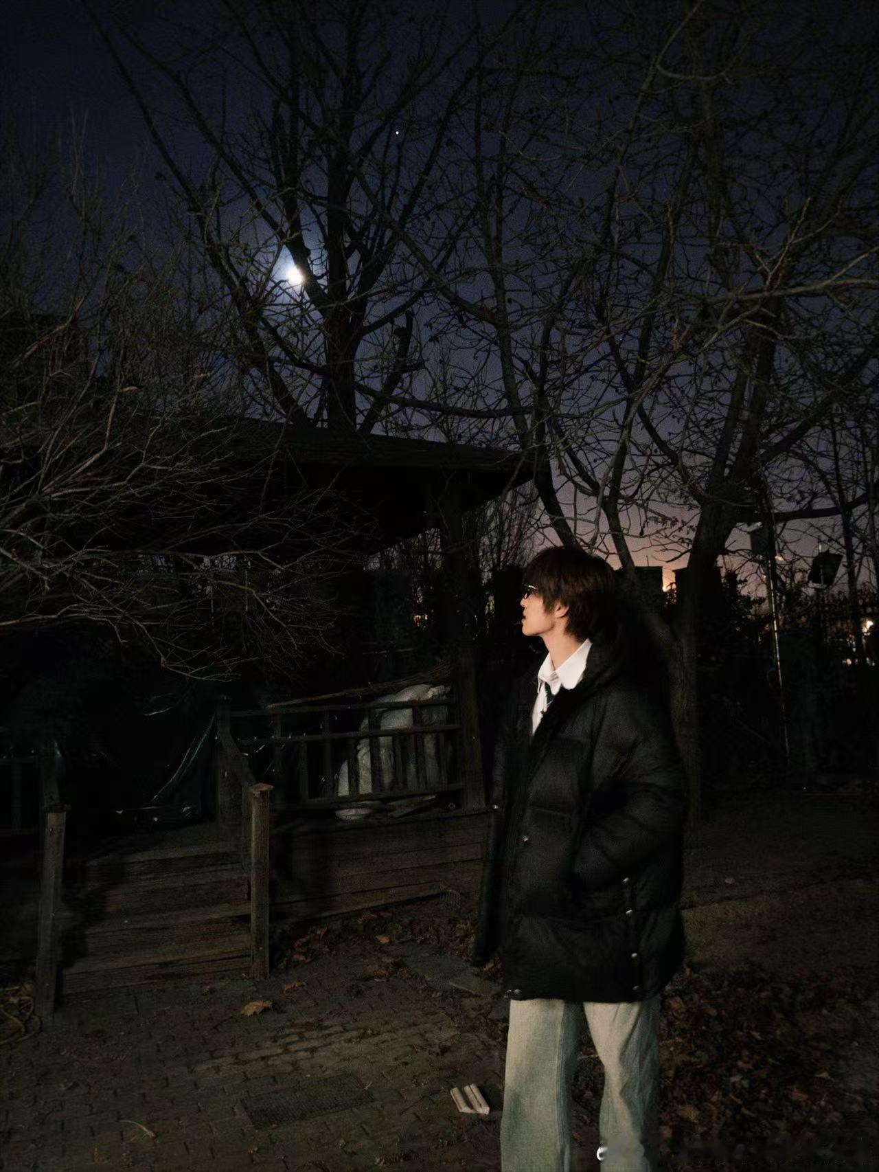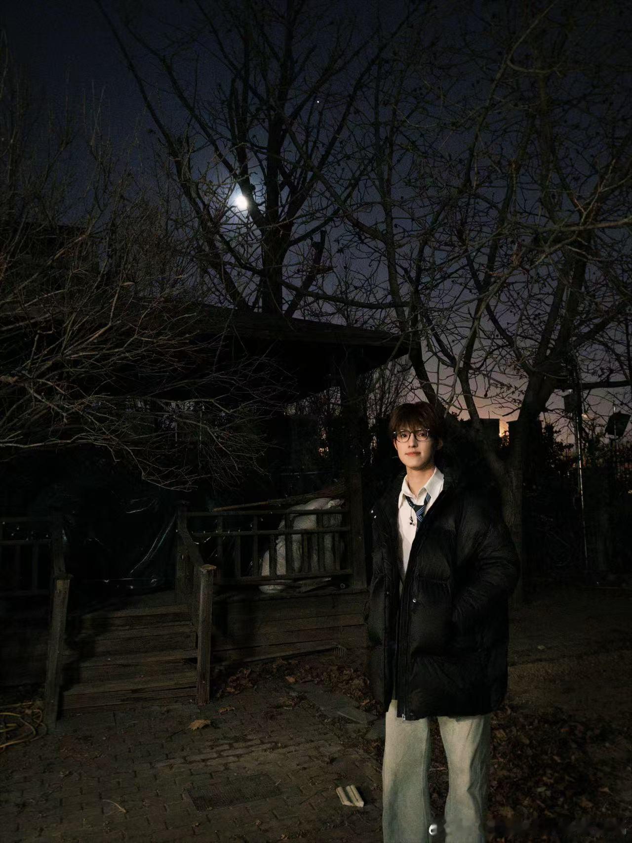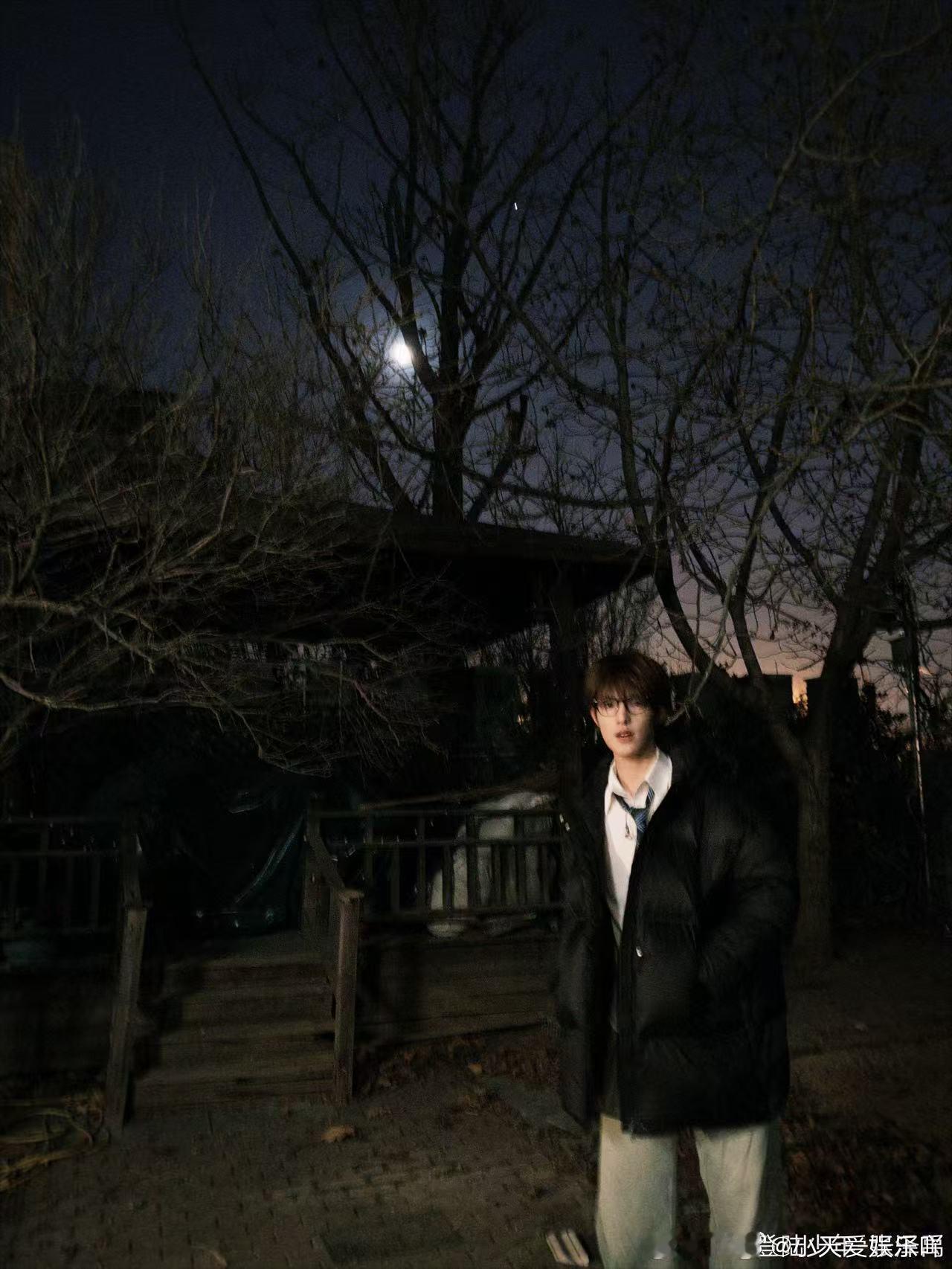 张泽禹昨天晚上天上的大月亮张泽禹月夜随拍 张泽禹的月夜随拍太绝了,黑框眼镜加持高