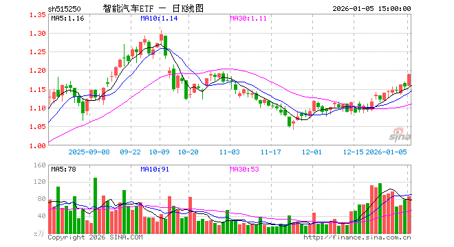 1月5日,智能汽车ETF(515250)涨2.86%,成交额1.02亿元。当日份额增加2000.00万份,最新份额为6.08亿份,近20个交易日份额增加1.32亿份。最新资产净值计算值为7.21亿元。