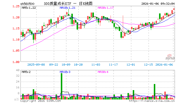 500质量成长ETF(560500)业绩比较基准为中证500质量成长指数收益率,管理人为鹏扬基金管理有限公司,基金经理为施红俊,成立(2021-08-04)以来回报为23.32%,近一个月回报为5.86%。