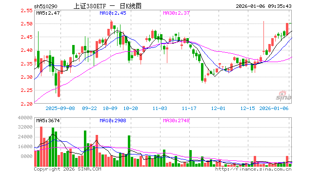 1月6日,上证380ETF(510290)开盘涨0.00%,报2.500元。上证380ETF(510290)重仓股方面,卧龙电驱开盘跌0.48%,赤峰黄金跌1.03%,瑞芯微涨0.20%,亨通光电涨0.00%,张江高科跌0.61%,华海清科跌0.04%,四川长虹跌1.38%,东吴证券跌0.33%,九号公司跌0.39%,晶晨股份涨0.01%。