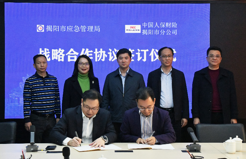 2026年1月5日,揭阳市应急管理局与中国人民财产保险股份有限公司揭阳市分公司正式签订战略合作协议,双方将紧紧围绕风险管控、减灾救灾的共同目标,协力联动、创新服务、共享资源,创新多层次、多形式的合作方式,共同防范风险灾害,合力维护揭阳和谐稳定。