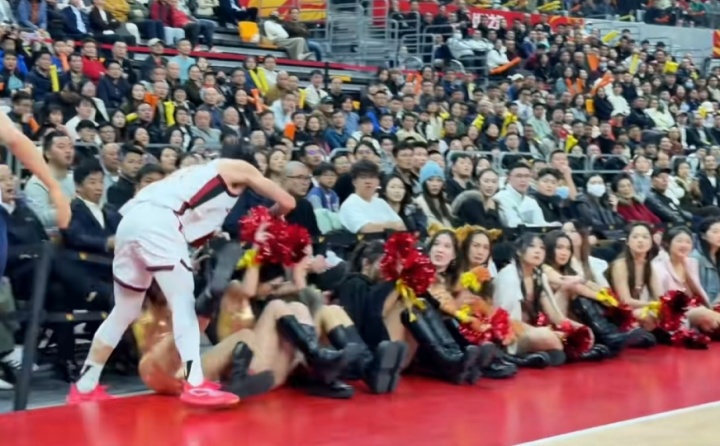 一头扎进啦啦堆!吴前扑救界外球撞翻广东主场美女啦啦队