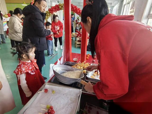 活动分为传统文化体验区、趣味游戏区、美食体验区3个板块,共有10多个项目。美食区的围炉煮茶、爱的“爆爆”、冰糖葫芦……引得孩子们垂涎欲滴;趣味游戏区的魔法套圈、大吉大利等游戏锻炼孩子们的动手能力;传统文化体验区的剪纸、拓福字等让孩子们在快乐中感受到传统文化的魅力。