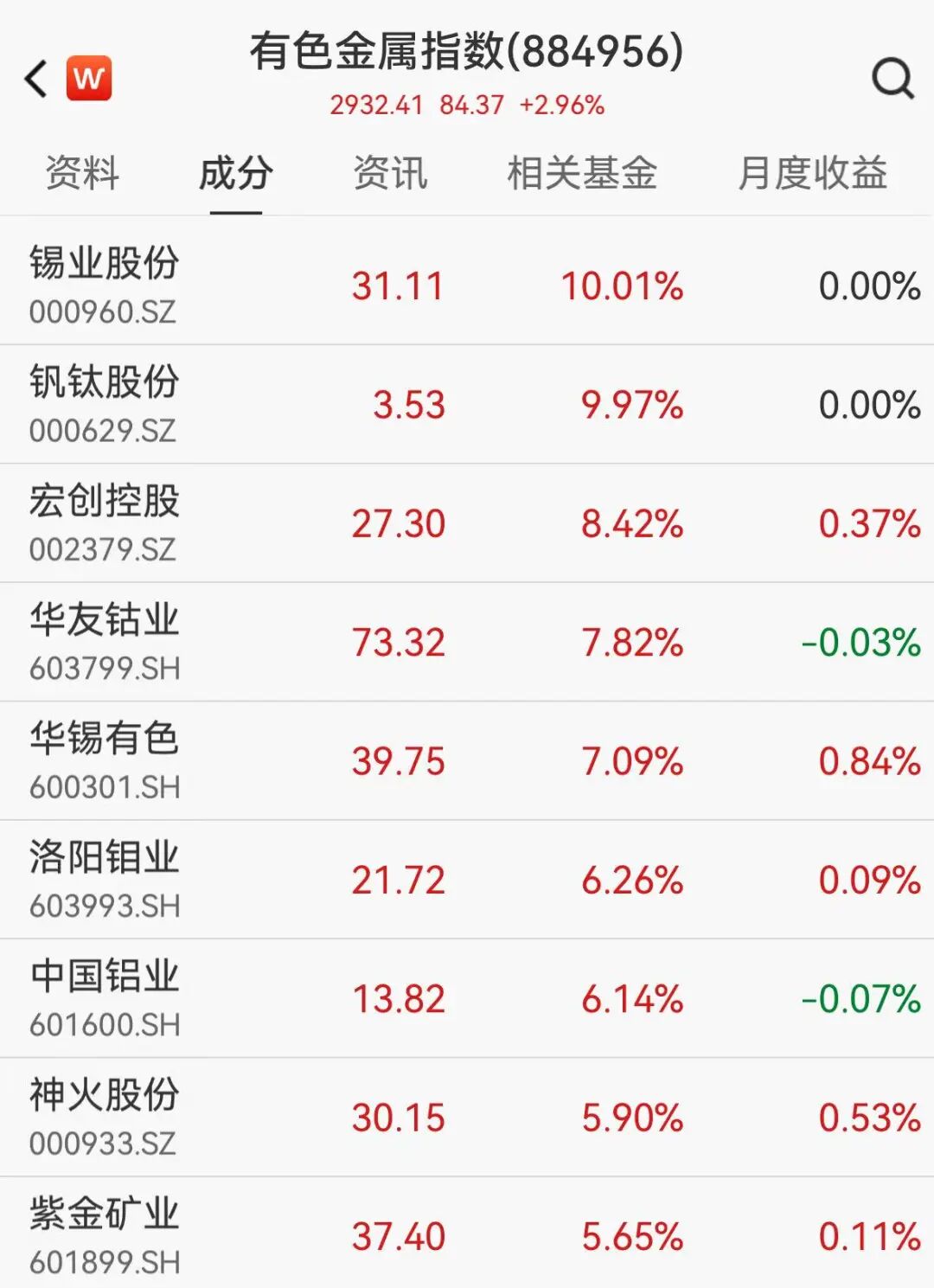 有色金属板块表现活跃,洛阳钼业、紫金矿业等多股创历史新高。商业航天概念反复活跃,鲁信创投8天6板。