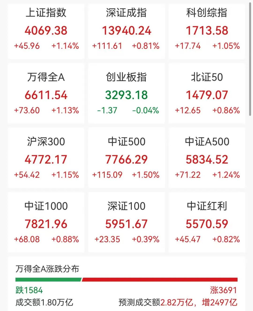 1月6日,沪指高开高走,截至午盘收盘,沪指涨1.14%,创十年新高。深成指涨0.81%,创业板指跌0.04%。沪深两市半日成交额1.8万亿,较上个交易日放量1455亿,全市场近3700只个股上涨。