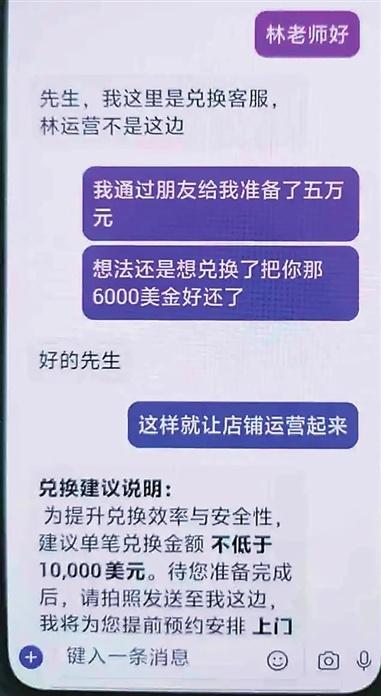 与此同时,对方告知他“美金已到账”,让小伟联系“客服”确认。首次操作后,小伟收到少量返利,便放松了警惕。在对方的再三鼓动下,小伟选择了更大的“进货方案”,价值5万余元美金需准备约40万元人民币现金。