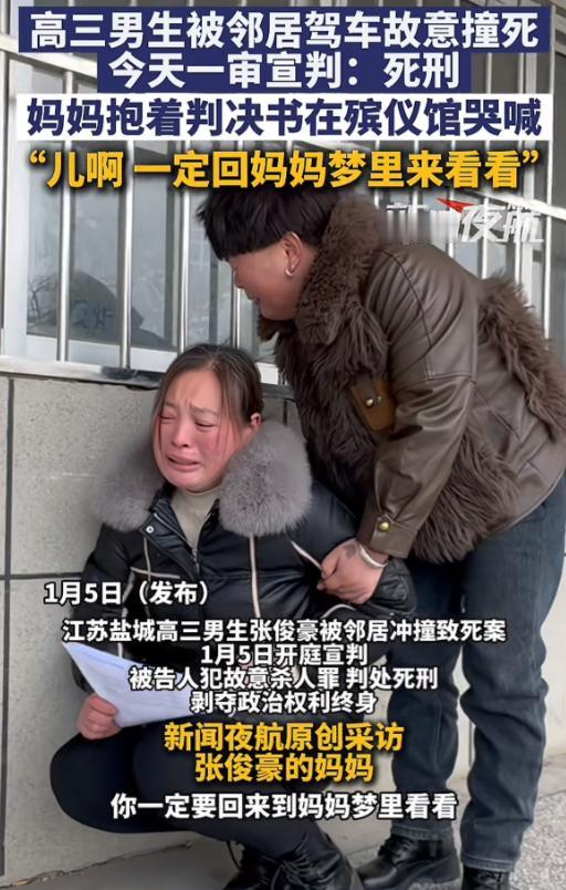 江苏高三男生被邻居恶意冲撞致死案背后,受害者家庭非常富裕,在村里和城市都有房产,而罪犯一家的条件则相对较差一些。 住得近的邻居,本该是抬头不见低头见的熟人,尤其在农村,远亲不如近邻这句话流传了多少年,可到了这两家身上,却成了最讽刺的写照。 他们中间就隔着一条三米宽的小巷,张俊豪家是两层带露台的楼房,而王某桂家只是一间带小院的一层红瓦房,这种肉眼可见的差距,似乎为后来的悲剧埋下了隐患。 说白了,两家的矛盾压根算不上什么深仇大恨,无非是宅基地地界、鸡粪堆放这类鸡毛蒜皮的小事。 可偏偏就是这些小事,在经济差距带来的心理失衡下,慢慢发酵成了无法化解的积怨。 村里人都知道,张家条件好,在城里也有房产,办事说话都透着底气;而王家条件普通,王某桂三十多岁没成家,日子过得不算顺意,或许就是这种长期的落差,让一些小事被无限放大,最终酿成了大祸。 悲剧发生在2024年5月29号,离高考就剩一个月,19岁的张俊豪骑着电动车去学校,谁能想到这竟是他人生最后一段路程。 那天王某桂开车路上撞见他,不知道是哪根弦搭错了,当场掉头就跟了上去。 监控清清楚楚地拍着,张俊豪察觉到不对,多次变道躲避,可王某桂根本没打算放过他,三次变道追赶,还两度加速,最后以近百公里的时速狠狠撞了上去。 即便张俊豪落到了车顶,他也没刹车,拖了一段距离才让少年掉下来。 撞人之后,王某桂或许是怕了,打了120,可一切都晚了,张俊豪被送到上海的大医院抢救,却一直处于脑死亡状态。 家人没放弃,坚持了一年多,可在2025年7月29号,这个本该走进大学校园的少年,还是永远离开了,年仅20岁。 案发那天,他的父母去上海看病,家里只有他和爷爷奶奶,谁能料到,一顿午饭的功夫,天人永隔。 到了法庭上,王某桂还在找借口,说自己当时精神状态不好,不是故意要杀人,只是想让张俊豪受点伤。 可监控不会说谎,他的所作所为全被记录下来,从掉头追赶到加速撞击,每一步都透着蓄意。法院最终没采信他的辩解,2026年1月5号,一审宣判他死刑,这是他应得的报应。 张俊豪的母亲到最后都想不通,大人之间这点小事,为啥要报复到孩子身上,其实说到底,这背后藏着的是经济差距带来的心理扭曲,是邻里矛盾得不到及时化解的恶果。 在很多地方,尤其是农村,经济条件的悬殊很容易引发心理失衡,再加上缺乏有效的调解渠道,一些小事就可能被攒成深仇。 王某桂不仅毁了张俊豪的人生,毁了张家的希望,也把自己的家彻底拖垮了,他母亲后来病逝,家里的房子也空了下来,真正的害人害己。 这起案子给所有人都提了个醒,邻里之间哪有那么多解不开的疙瘩?就算经济条件有差距,各过各的日子就好,没必要非得争个高低。 有矛盾好好说,实在不行找村里、找社区调解,总比走极端强,远亲不如近邻,相处好了是福气,处不好也别成仇人。 张俊豪成绩好,要是没这事,现在都该读大二了,多可惜啊。 大家对此怎么看?欢迎评论区留下您的观点!