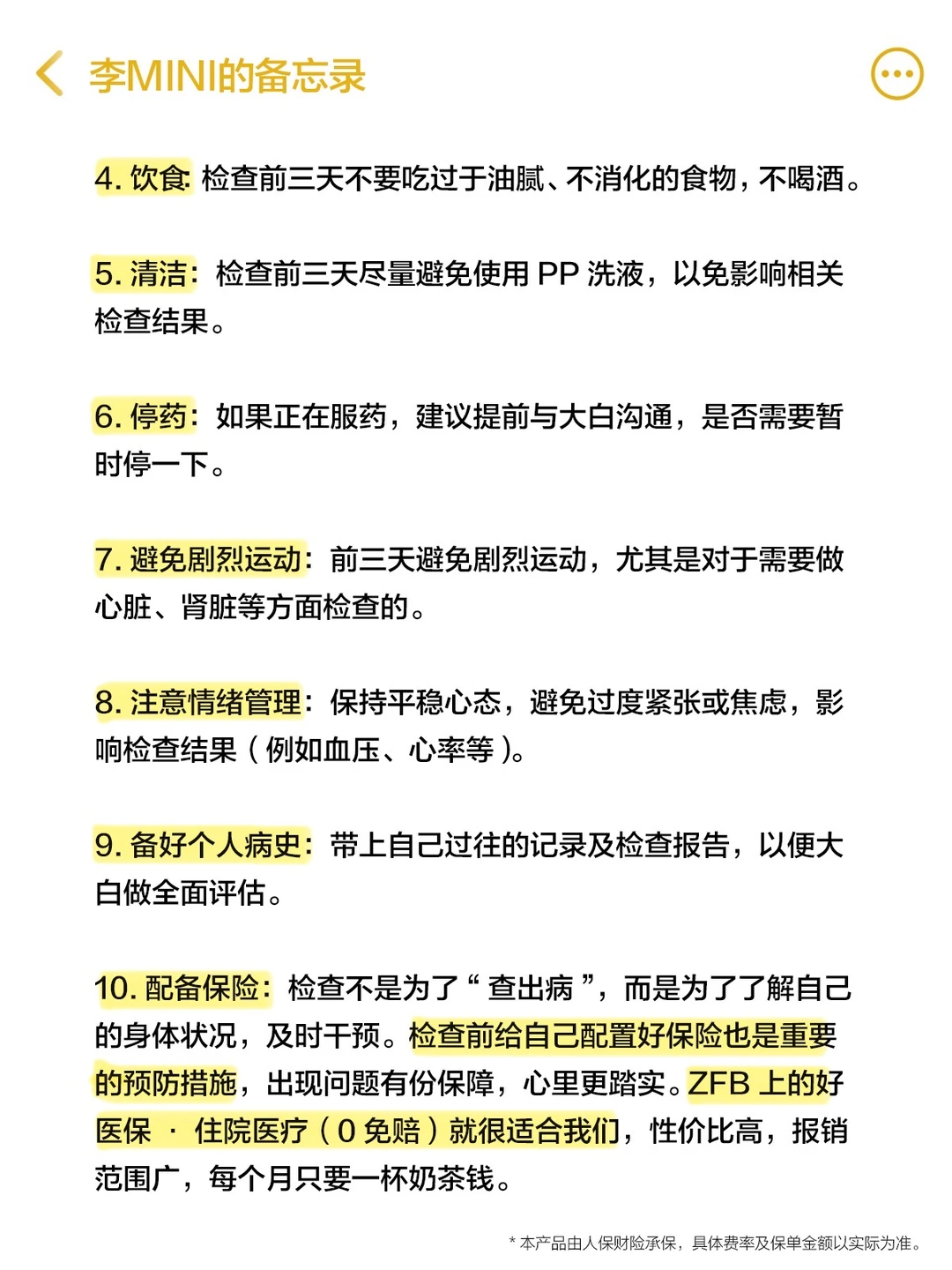 姐妹们,你们是不是“身体不舒服了才去检查”? 其实等到身体发出信号,很多问题已经潜伏一段时间了,尤其是现在我们年轻人,工作压力大、作息乱,健康早就掉链子了。 定期检查不只是必要,更是必须!但关键是做对检查项目!按年龄、按情况来检查,才能真正有效,并且节省时间和钱。 1️⃣20-30岁:这个阶段职场压力大,很多女生都开始出现乳腺增生、结节等问题。 2️⃣30-40岁:到了30岁后,妇科和肿瘤筛查更加重要!除了20多岁该做的项目,女性肿瘤标志物四项也得加上! 3️⃣40-50岁:这个阶段,肿瘤的发生风险直线上升,特别是宫颈、卵巢和乳腺检查,提前发现、早期干预。 4️⃣50岁以上:到了50岁,心脑血管问题和血糖异常常见!心电图、颈动脉彩超,这些必查!血糖检查更是重中之重! 当然检查不是为了“查出病”,而是了解自己的身体状况,及时干预。人生中的小病大病,都是我们无法预料的,提前给自己配置好健康保障也是重要的预防措施,出现问题有份保障,心里更踏实。 ZFB上人保财险承保的【好医保·住院医疗(0免赔)】就很适合我们女性。 首先它是责任内0免赔额的,责任内一般医疗:年累计自费或自付1万以内,赔付比例30%;1万以上赔付比例100%!特别适合我们女生这因为“小病小痛”住院的情况。 而且一个月一杯奶茶钱,以25岁为例,每个月保费只需要十几块钱,就能够得到百万级别的保障:保单年累计赔付总限额600万元。 住院期间的保障拉满!除了住院(含手术、药品费等)的费用、还覆盖了特殊门急诊、门急诊手术、住院(含出入院当天)前30天后30天门急诊费用。 所以啊,姐妹们,真正的“爱自己”,不只是买支口红、喝杯奶茶,更是主动管理健康的那份远见。 定期做好对的项目检查,是读懂自己身体的信号;而提前在ZFB上搜【好医保住院】,投保人保财险【好医保·住院医疗(0免赔)】为自己配好保障,则是为未来可能的风雨提前备好一把伞。检查让我们心里有数,保障让我们兜里有底。现在就上ZFB搜一搜,给自己的身体一份双重的安心吧!