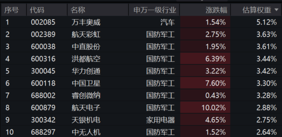 航空ETF基金(159257)标的指数成分股多数冲高,航天环宇20cm涨停,华测导航涨超16%,航天电子、北斗星通、海格通信等涨停,中国卫星涨7.6%,洪都航空涨超6%,华力创通、航天彩虹等涨幅居前。