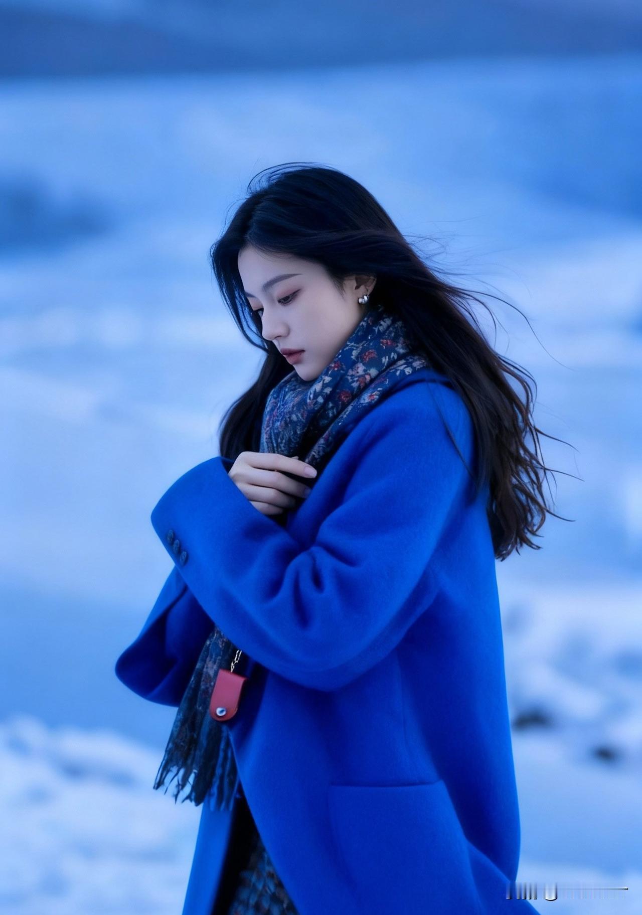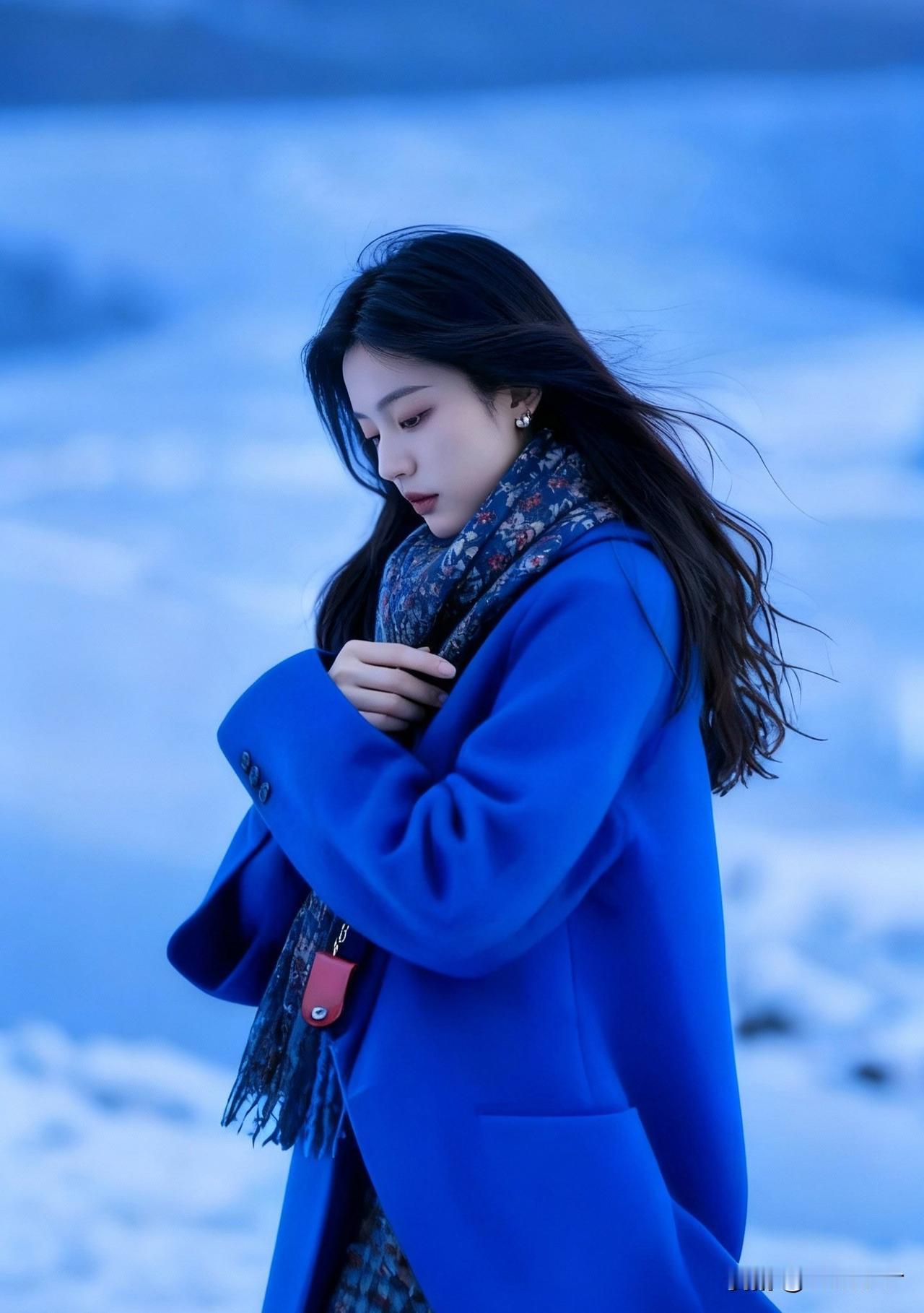 冬日暖阳下的蓝色少女,温柔而宁静。